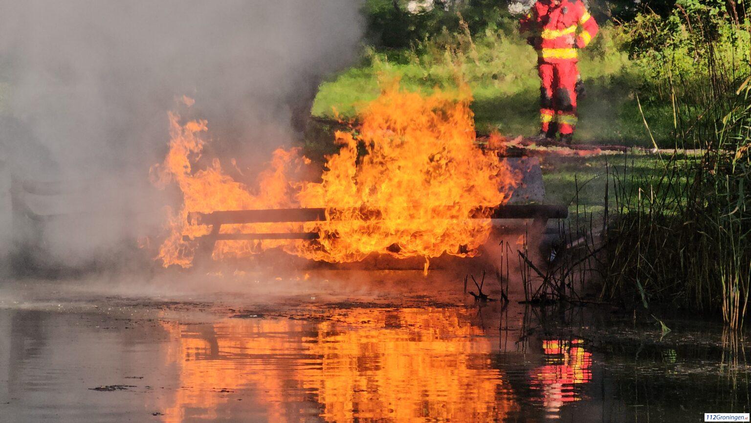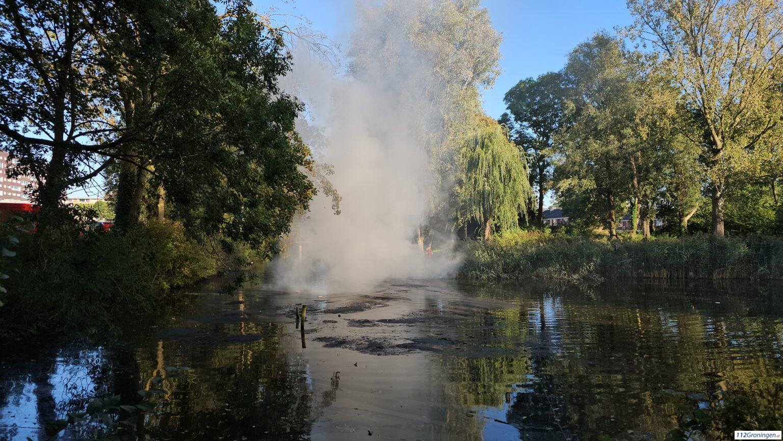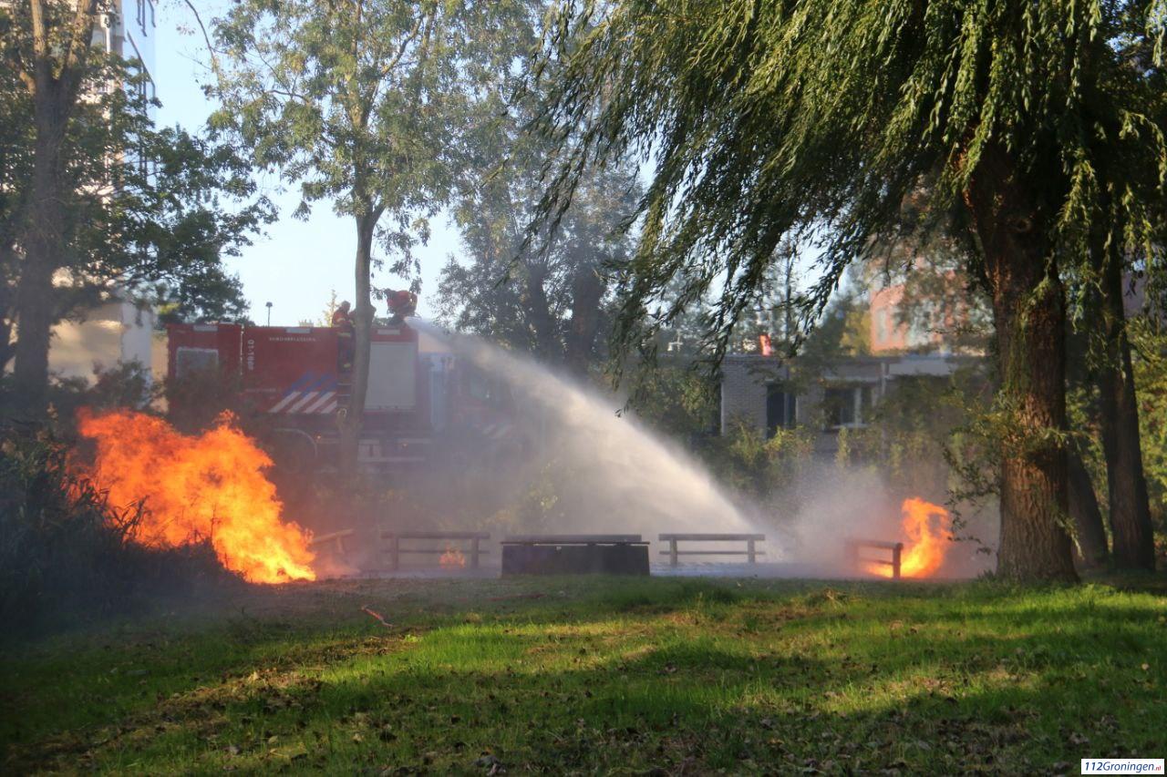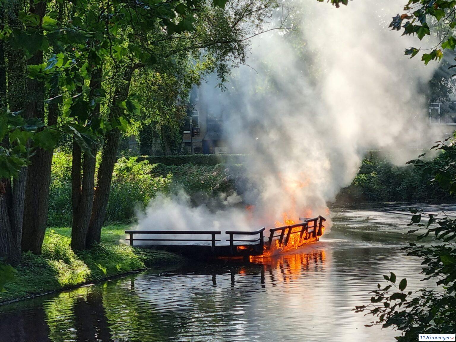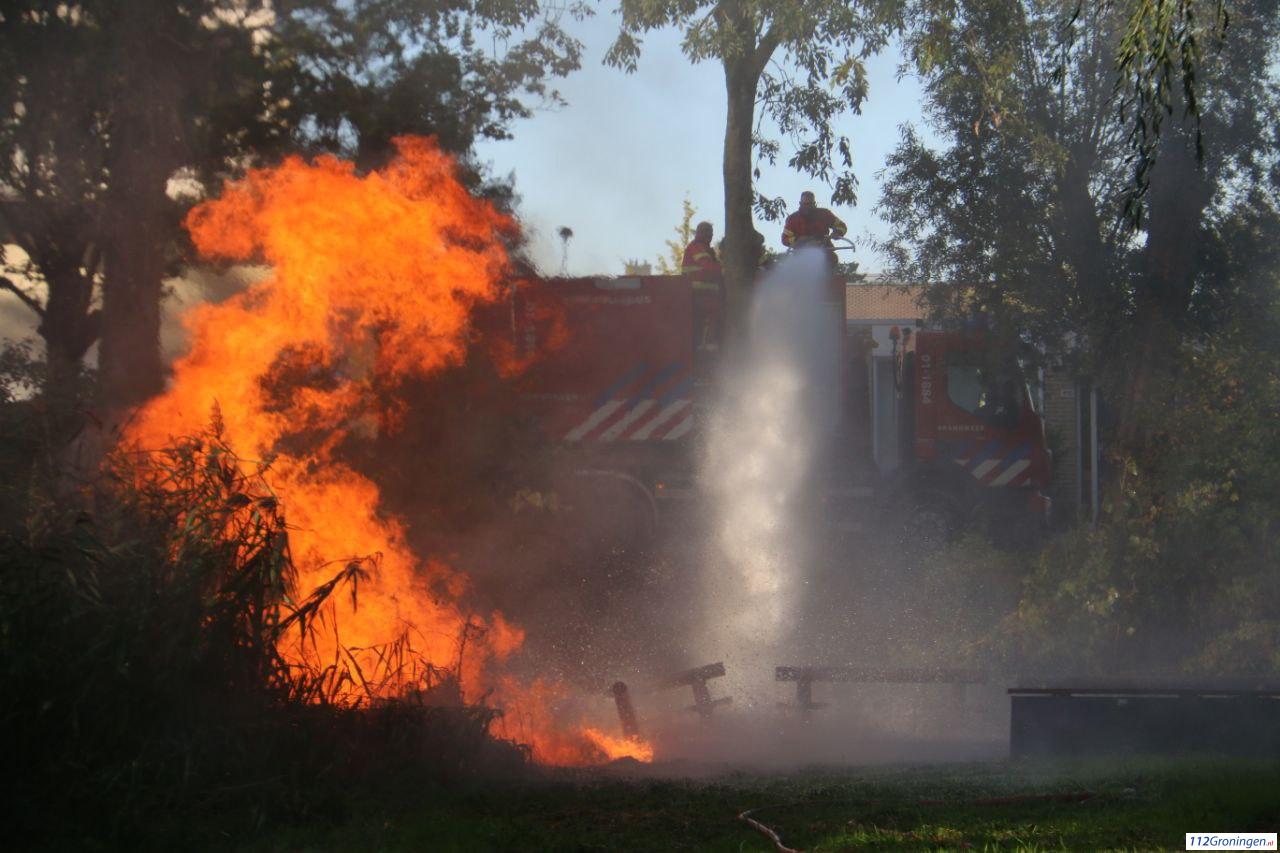 Groningen – Bij de Platinalaan in de wijk Vinkhuizen is een forse buitenbrand ontstaan bij een vissteiger langs de vijver. De vlammen waren metershoog in het Diamantpark.
