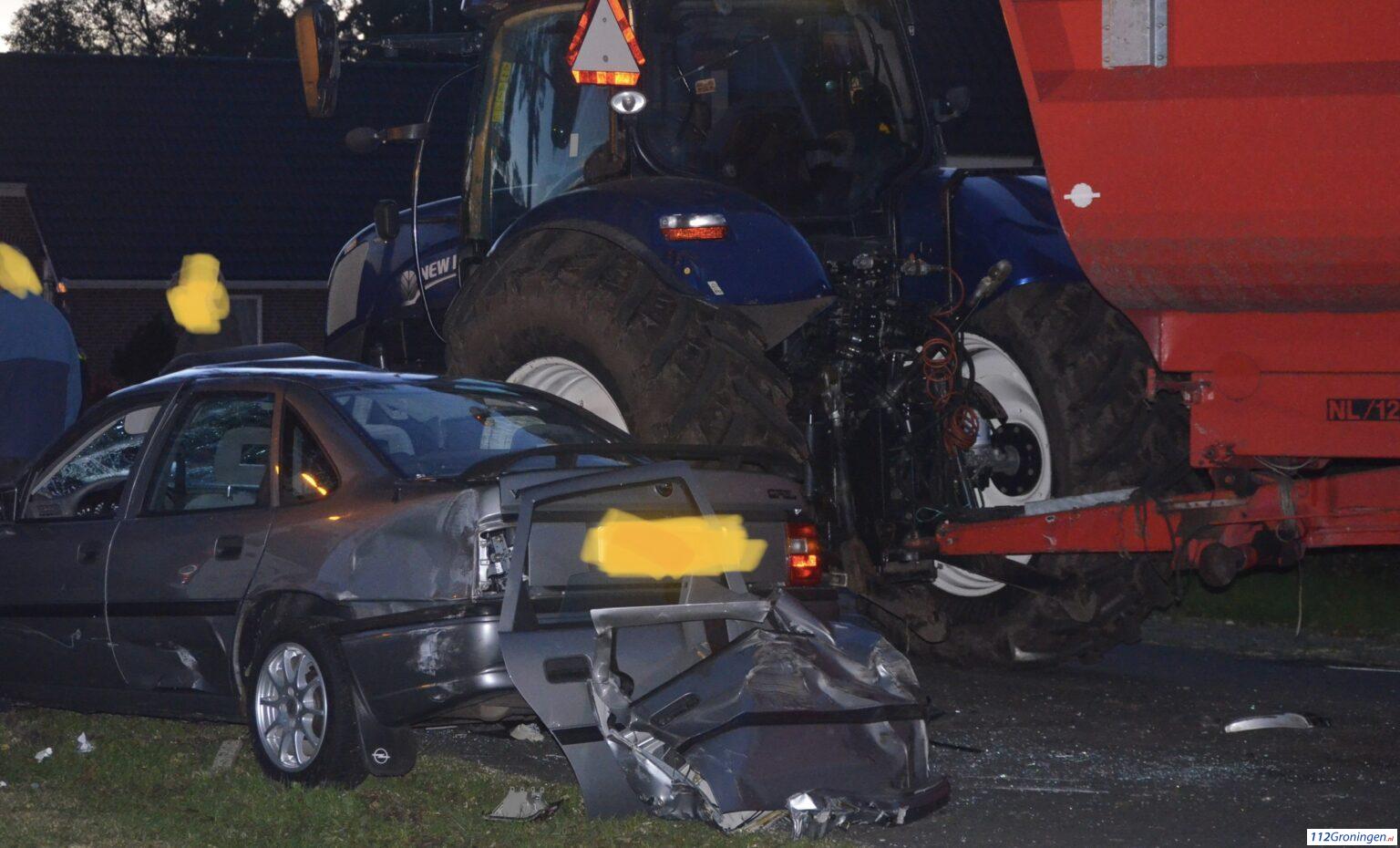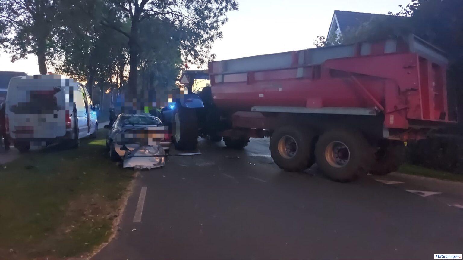 Drouwenermond – Op het Zuiderdiep bij Drouwenermond zijn een auto en een trekker tegen elkaar  gebotst.
