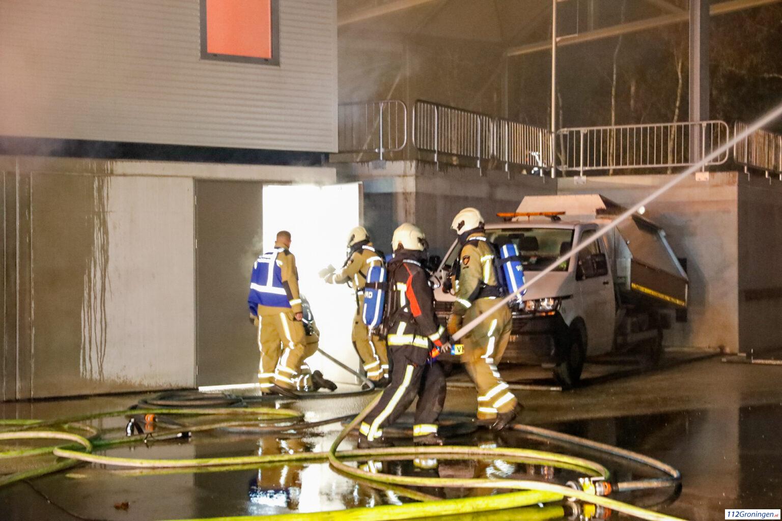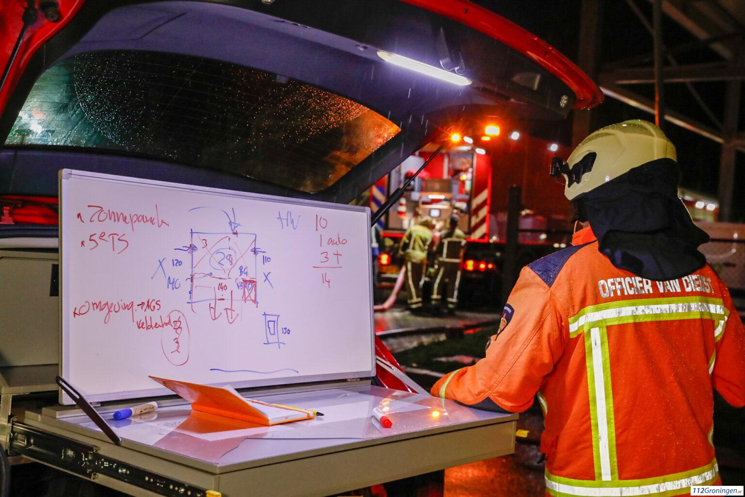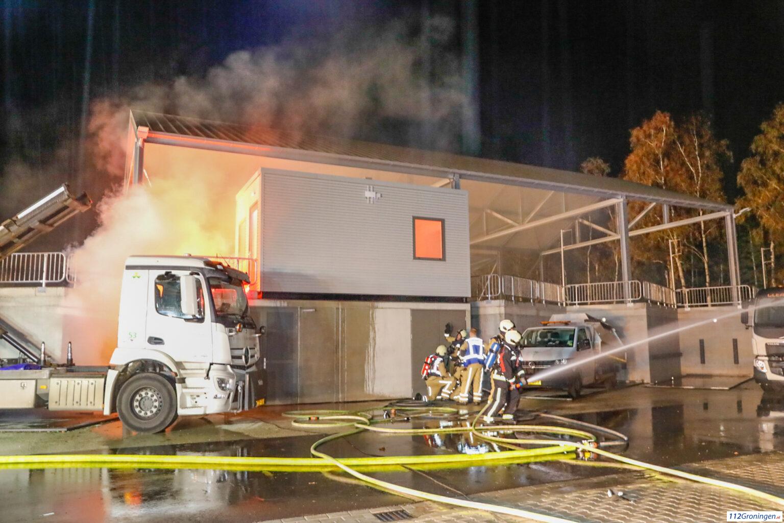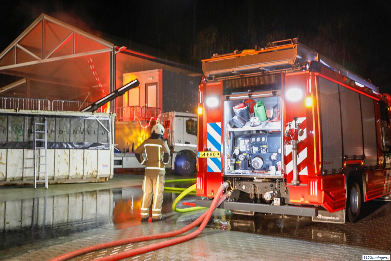 Op de nieuwe gemeentewerf aan de Ekkelkamp in Roden was een zeer grote brand uitgebroken.
