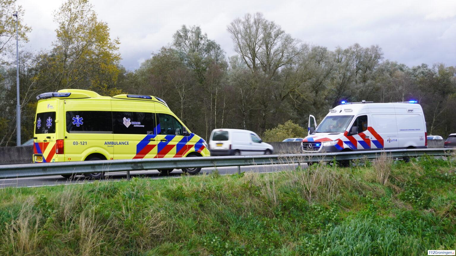 De bestuurder werd gecontroleerd door ambulancepersoneel. Onbekend of de persoon naar het ziekenhuis moet. De politie maakte een rapportage op. Er ontstond een kleine file.