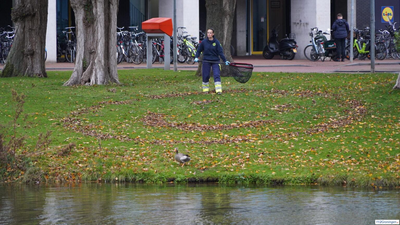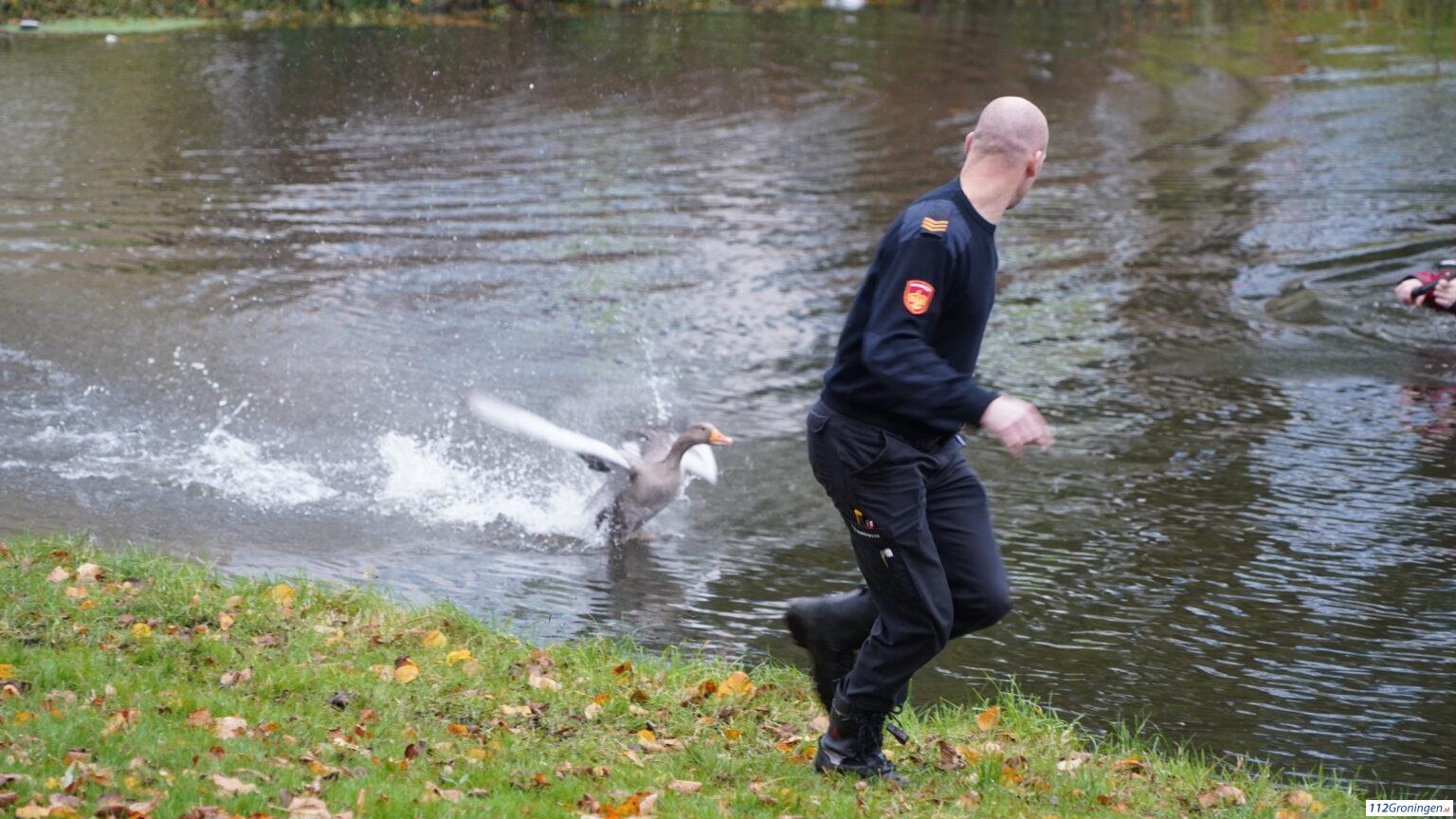 Groningen – Hulpdiensten moesten zondagmiddag in actie komen aan de Gorechtkade voor een gewonde gans. Het dier liet zich echter niet vangen.