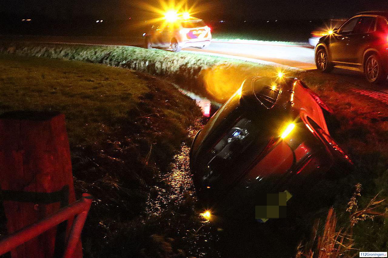 Niemand hoefde naar het ziekenhuis. De auto die in een sloot lag werd door een berger eruit getakeld. De politie noteerde de gegevens.
