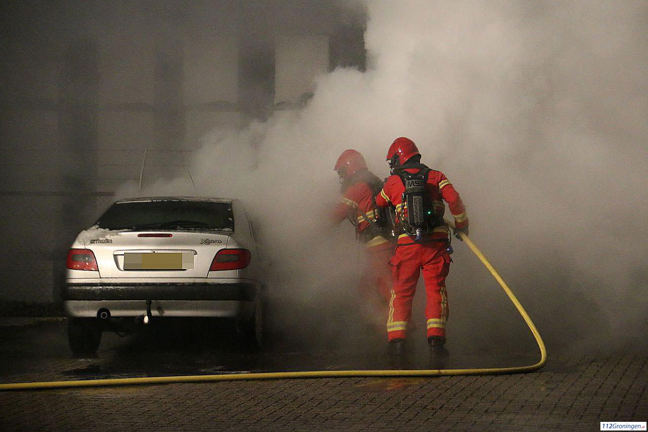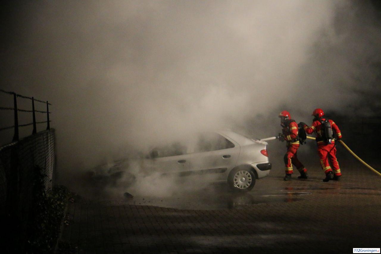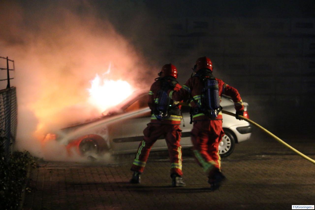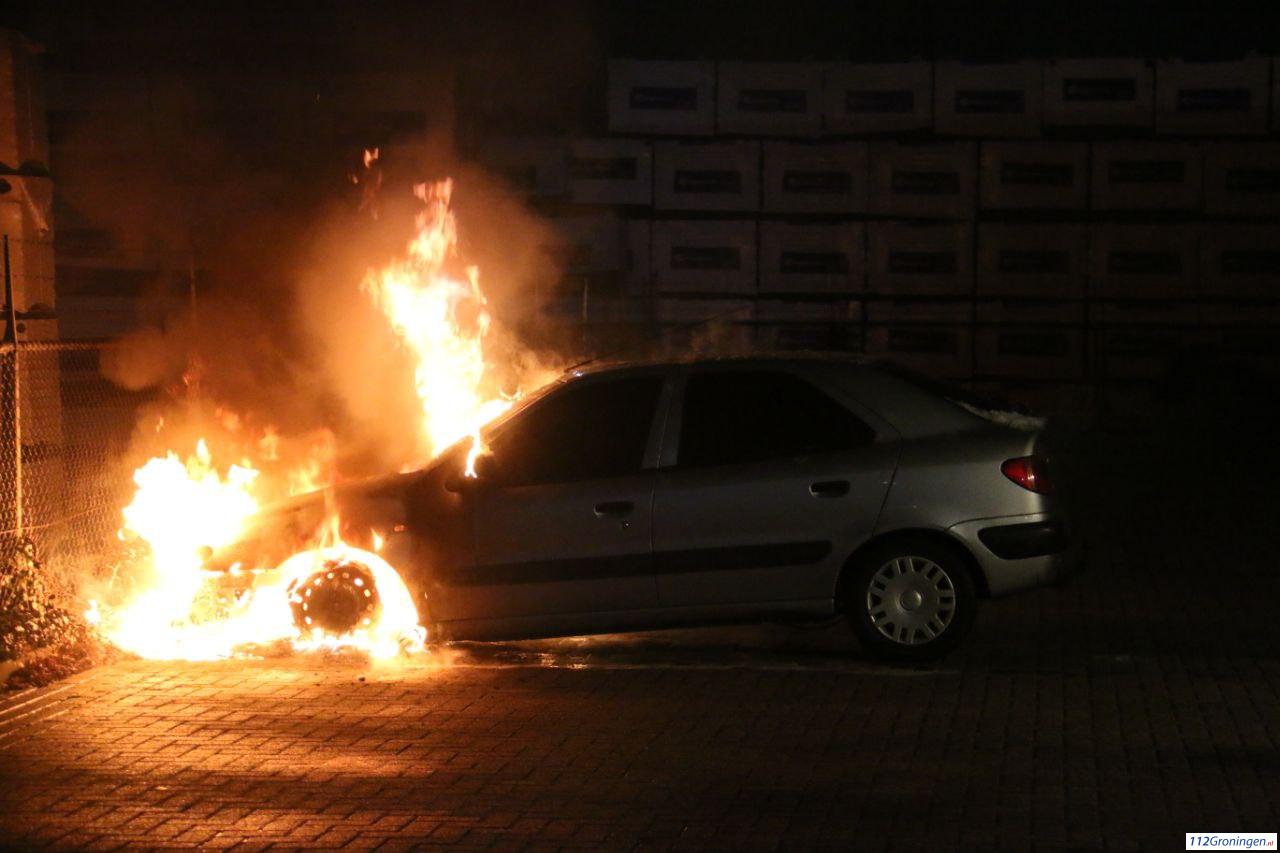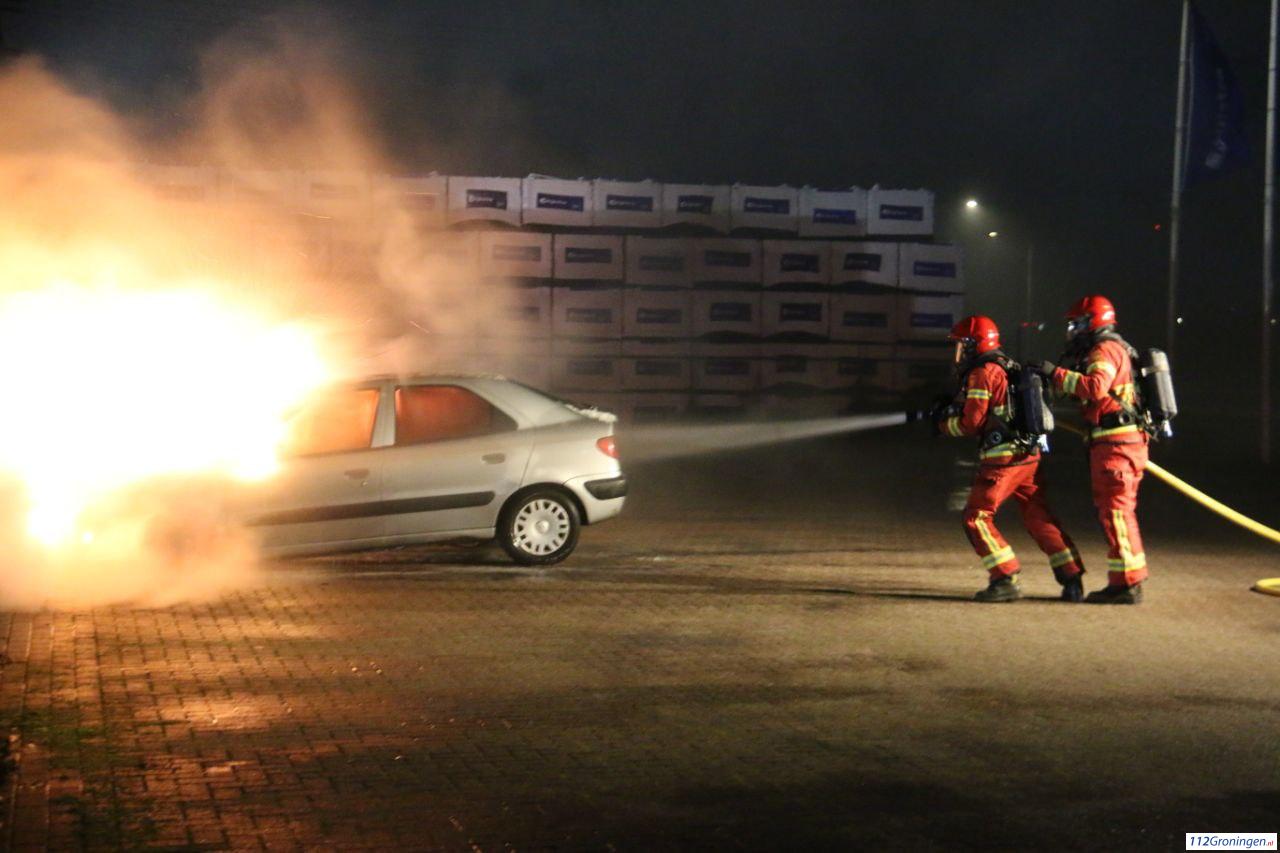 Auto in lichterlaaie aan de Adriaan Tripweg in Veendam