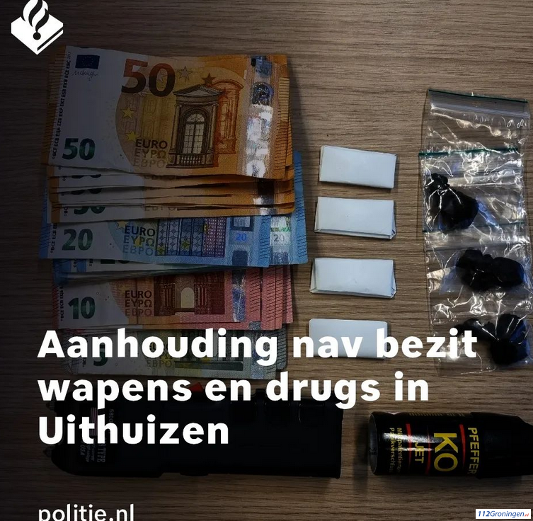 Uithuizen – De politie heeft dinsdagmiddag een 18-jarige inwoner van de gemeente Het Hogeland aangehouden. De man werd gecontroleerd aan de Sportlaan in Uithuizen.