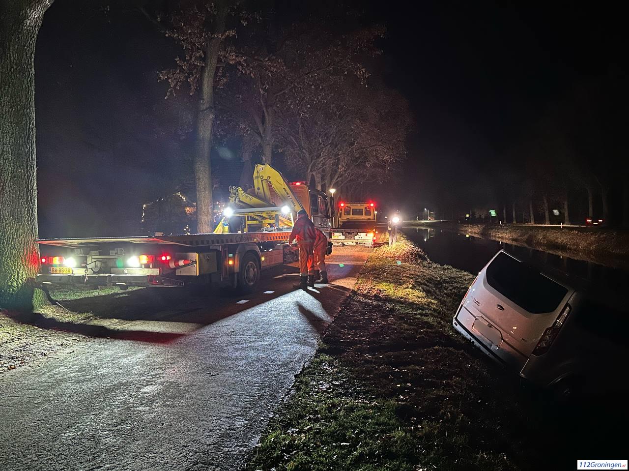 De politie heeft een blaastest afgenomen van de bestuurder en een bergingsbedrijf kwam met twee voertuigen ter plaatse om het busje uit het water te takelen. Tijdens de bergingswerkzaamheden was de weg tijdelijk gestremd. Video