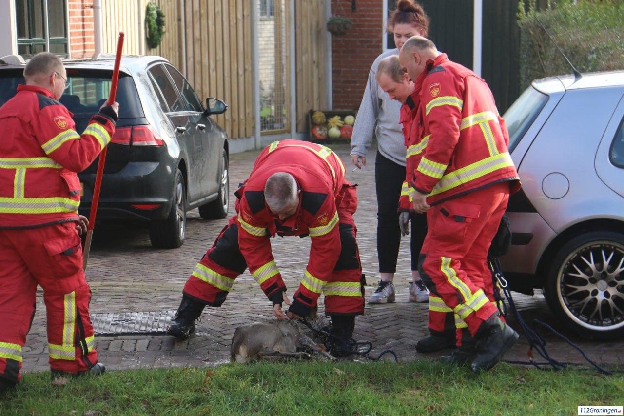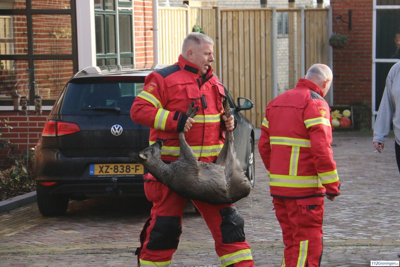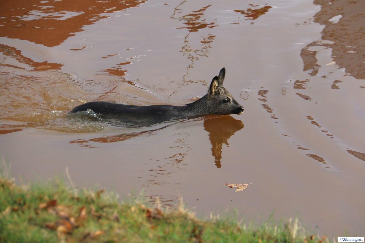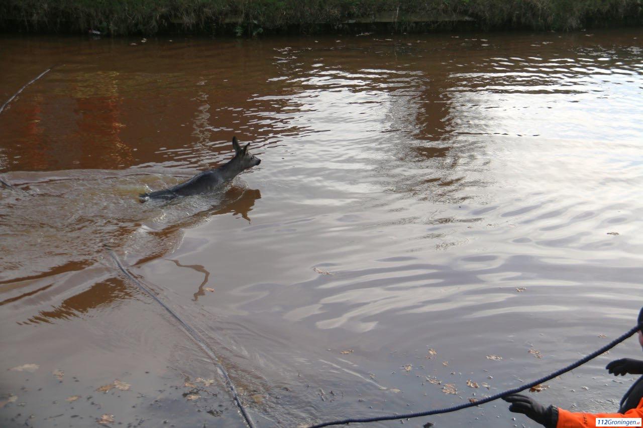 Nieuwe Pekela – De brandweer werd even na het middag uur gealarmeerd voor een dier te water aan de J. Oldenburgerstraat. Ter plaatse zwom een ree in het Pekelder Hoofddiep.