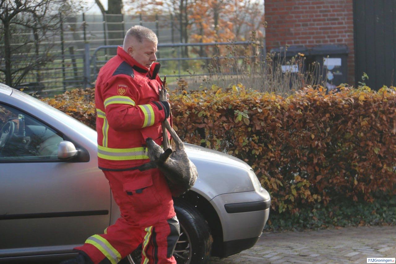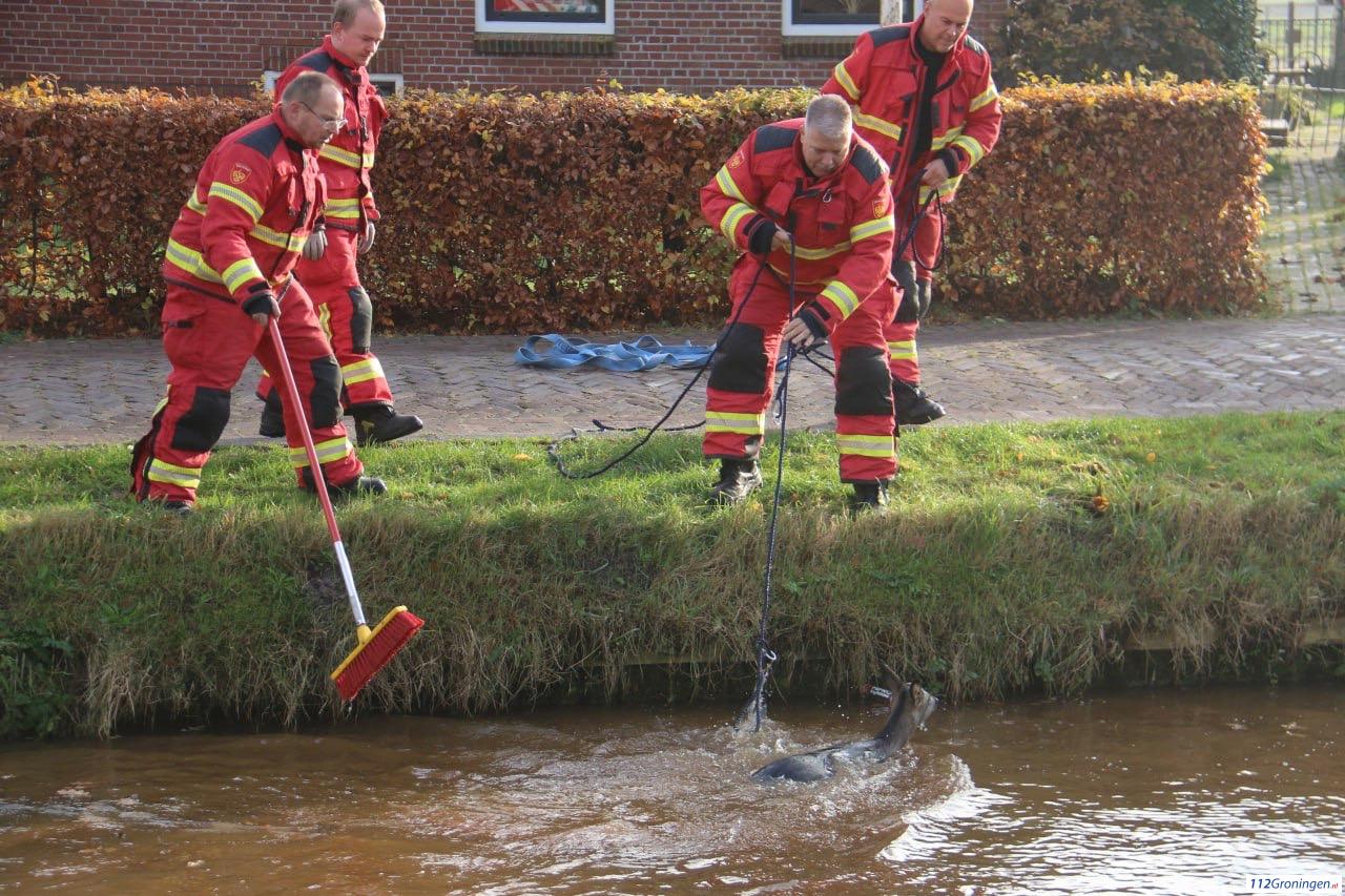 Brandweer redt ree uit het water in Nieuwe Pekela