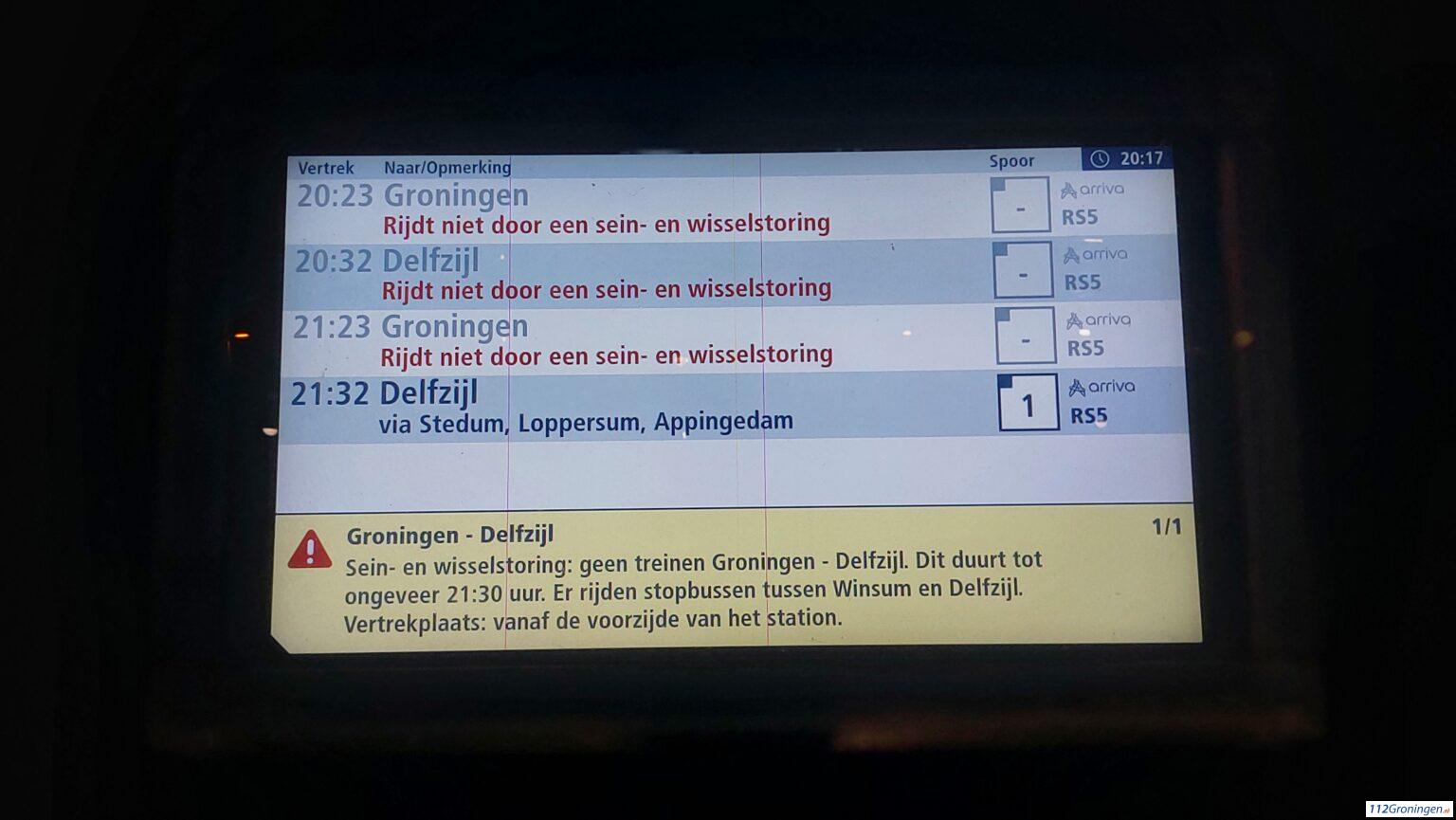Treinreizigers tussen Groningen en Delfzijl moeten zondagavond rekening houden met vertraging. Door een storing is er geen treinverkeer mogelijk.