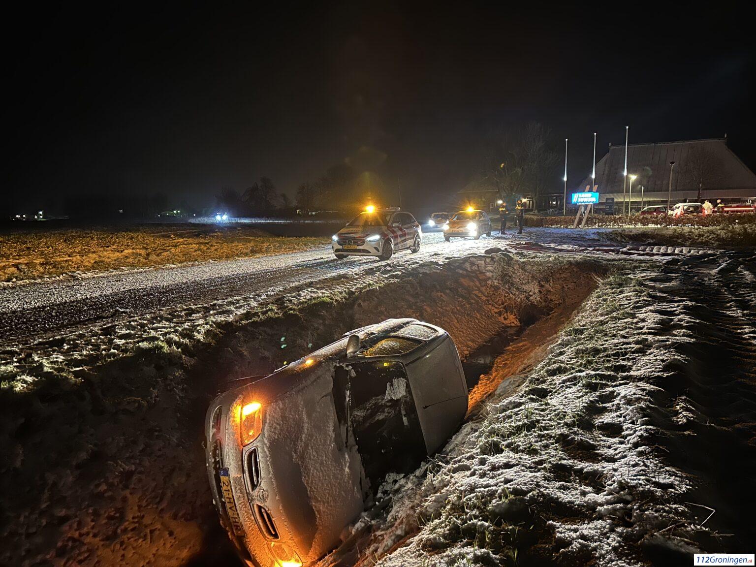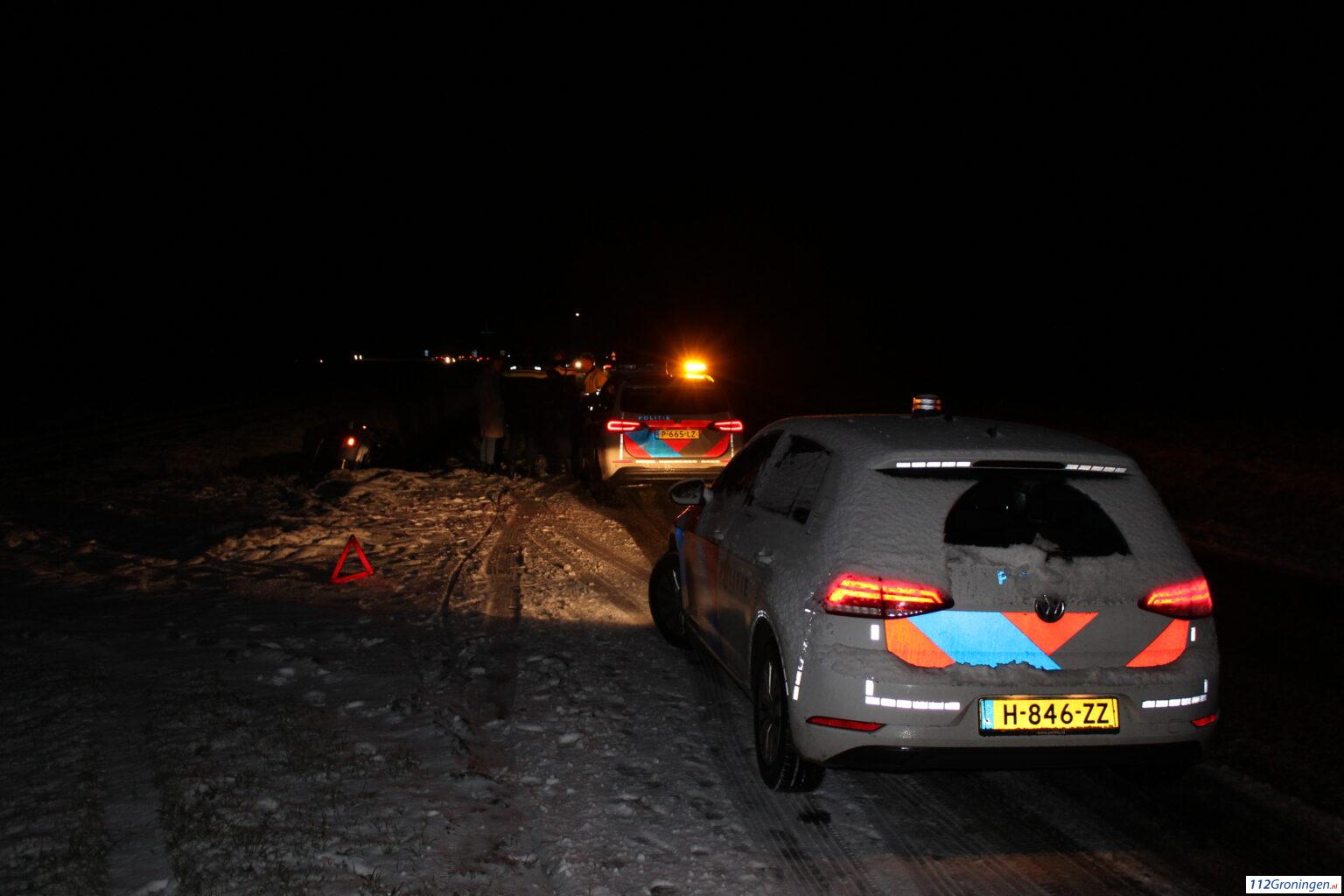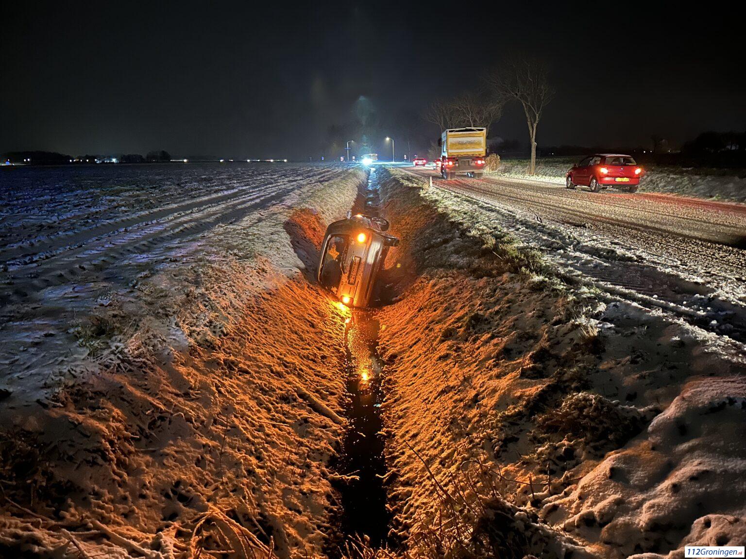 Hierbij is door de gladheid en de sneeuwval een auto uit de bocht gegleden en in een sloot tot stilstand gekomen. De bestuurder is er zonder verwondingen op eigen kracht uitgekomen, het voertuig werd geborgen door een berger