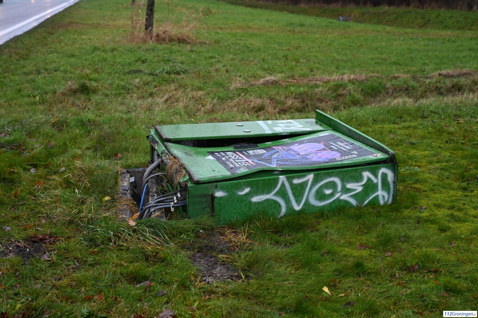 Er lag een auto in een droge sloot alvorens deze eerst nog over gras heen kwam en een stroomkast(of internetkast) raakte. De gewonde werd behandeld.