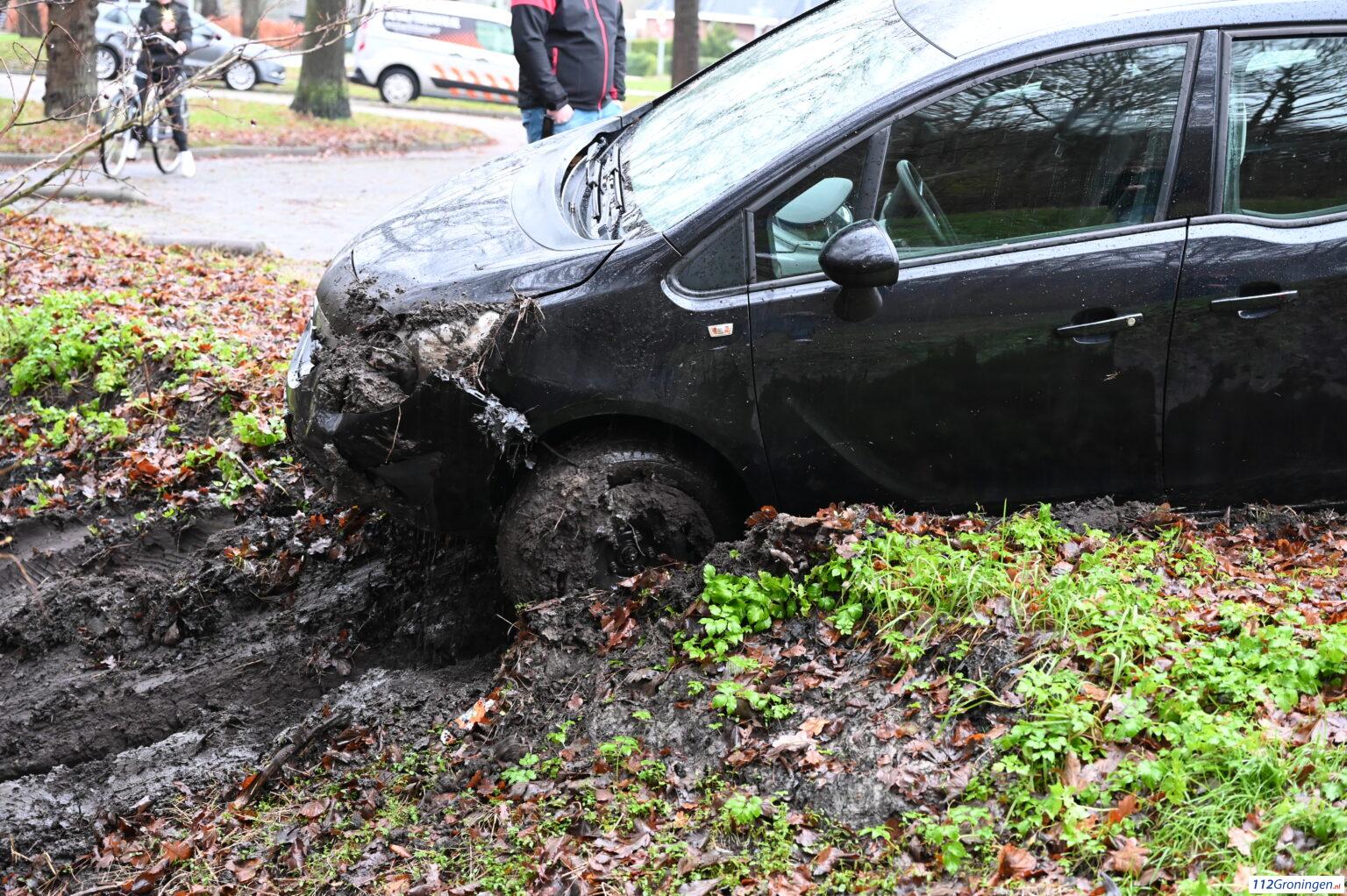 De politie onderzoekt de toedracht. De persoon werd gecontroleerd, mogelijk werd deze onwel, dat wordt bekeken. Hij hoefde niet naar het ziekenhuis. Een berger kwam  ter plaatse om de auto eruit te trekken.