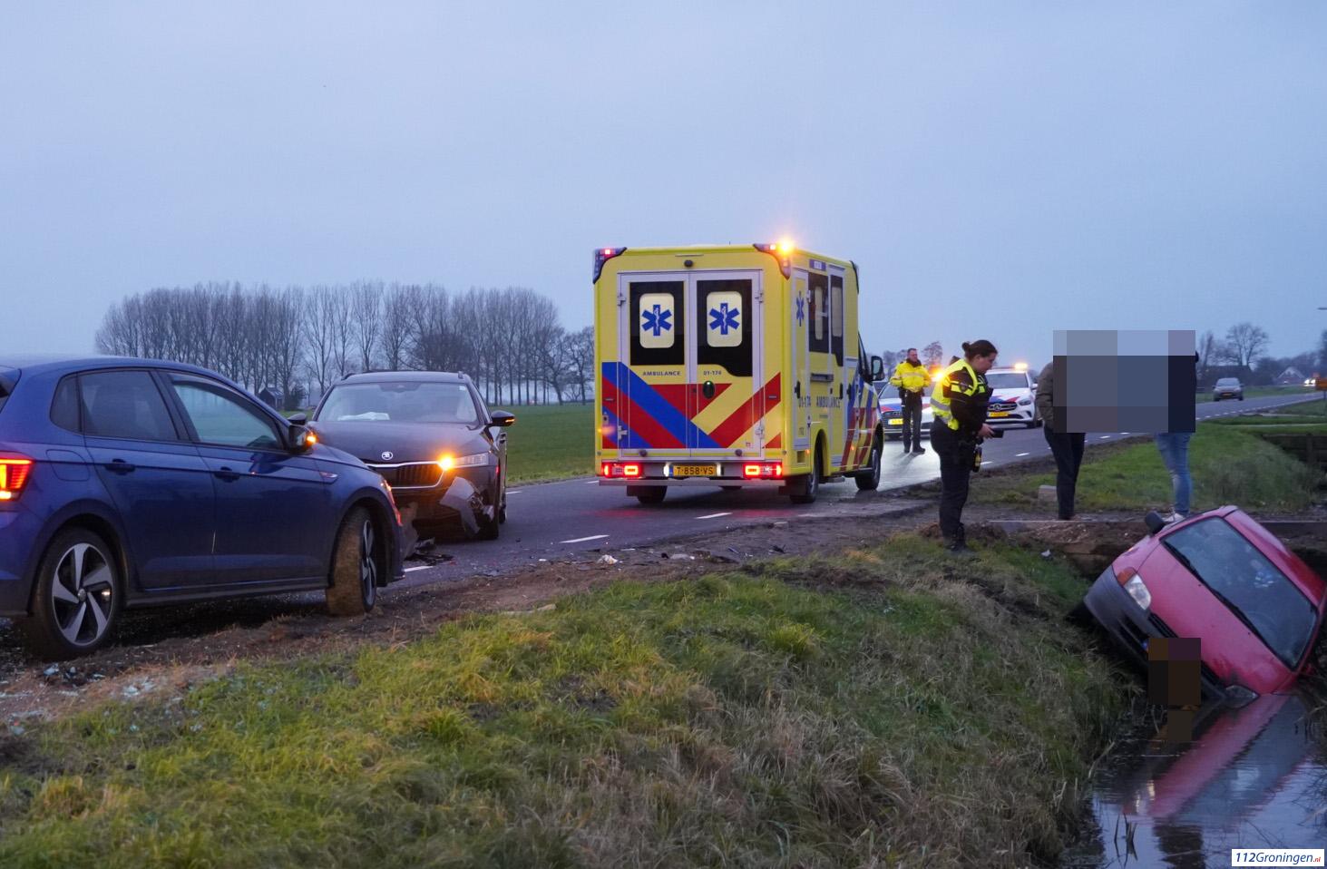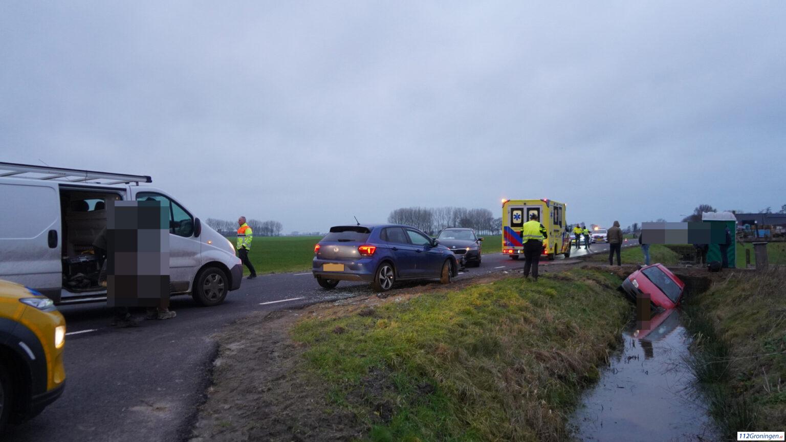 Ten Post – Op de N865 bij Ten Post heeft maandagochtend rond 08:15 uur een fors ongeval plaatsgevonden tussen vier auto daarbij is 1 in de sloot terecht gekomen.