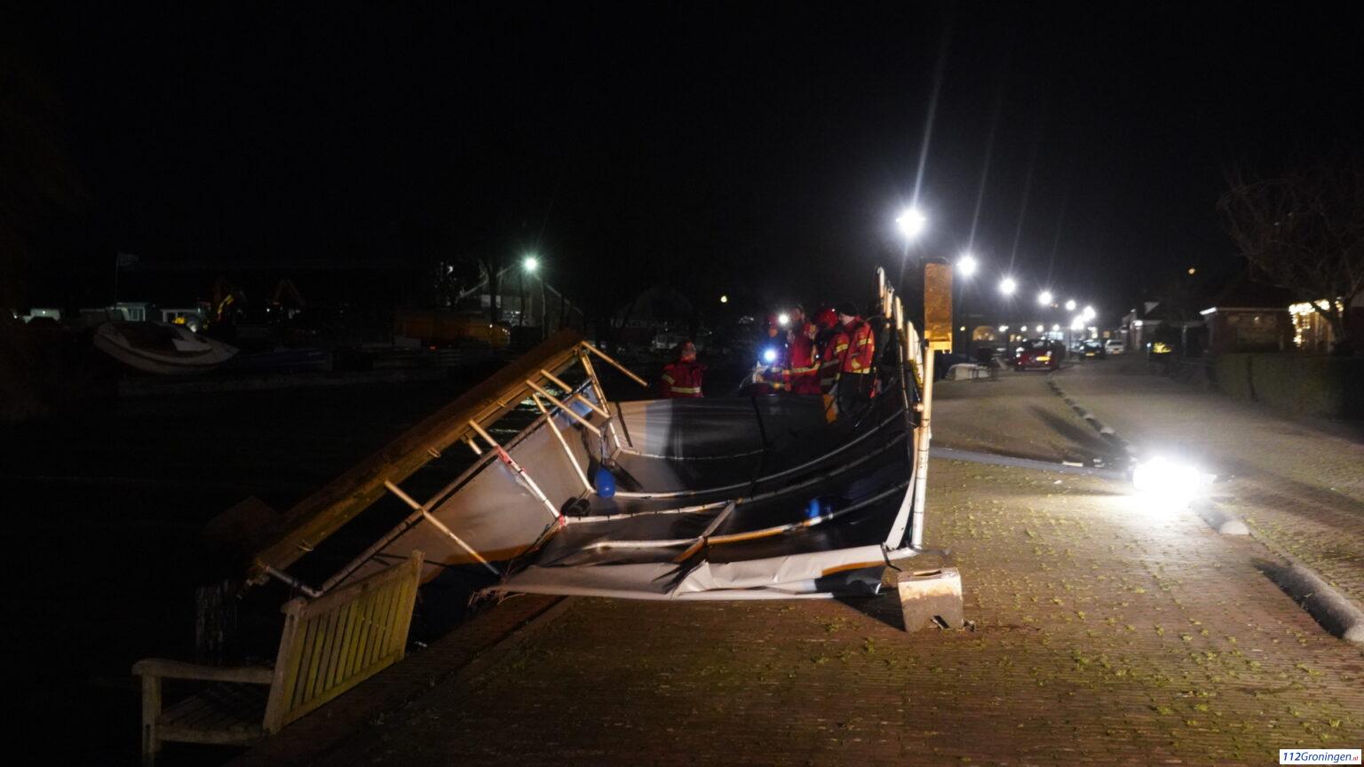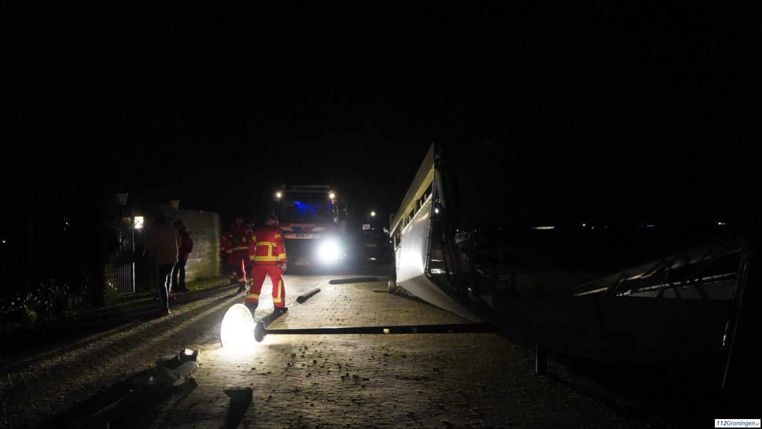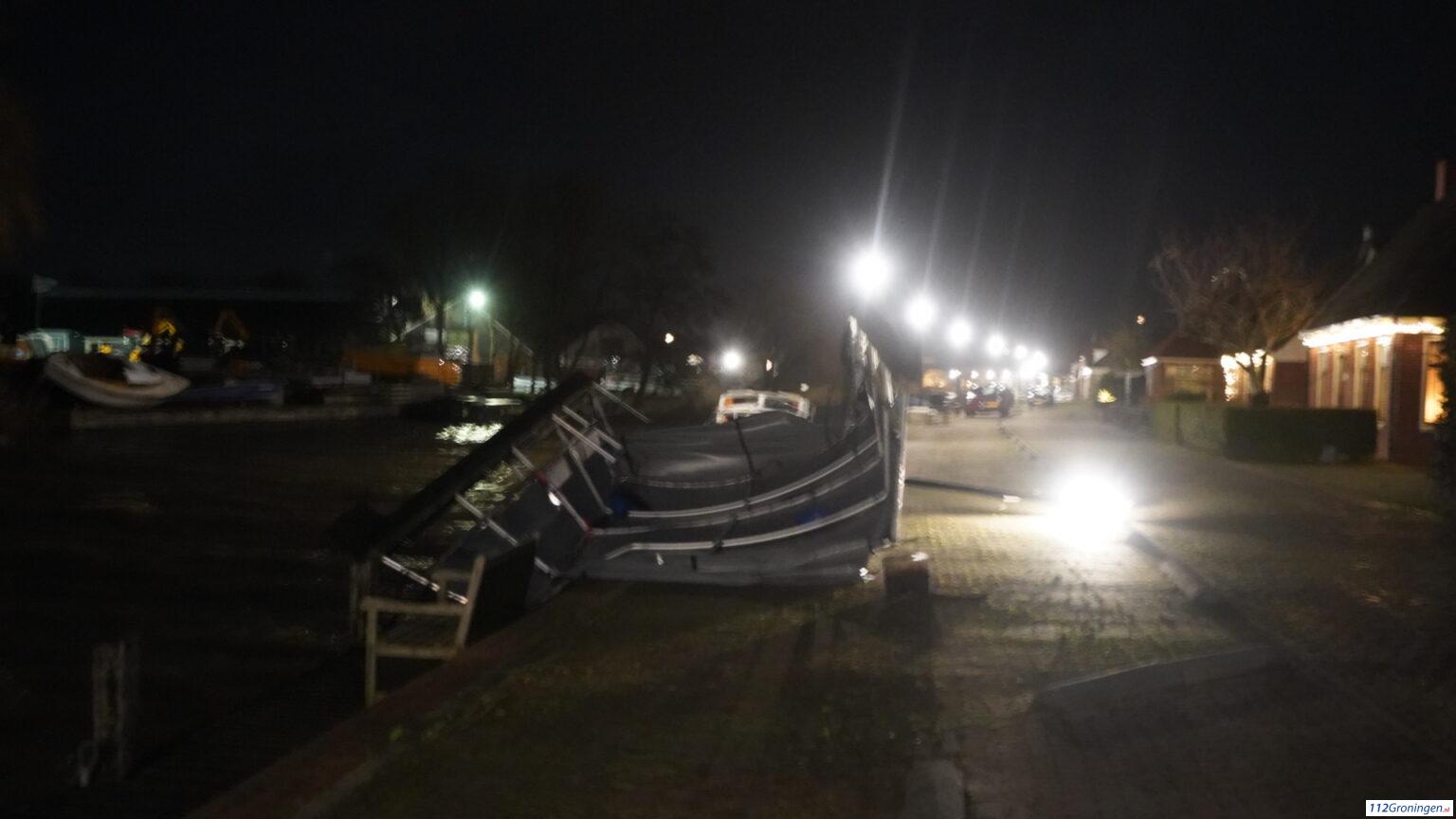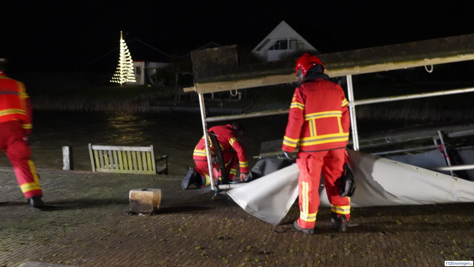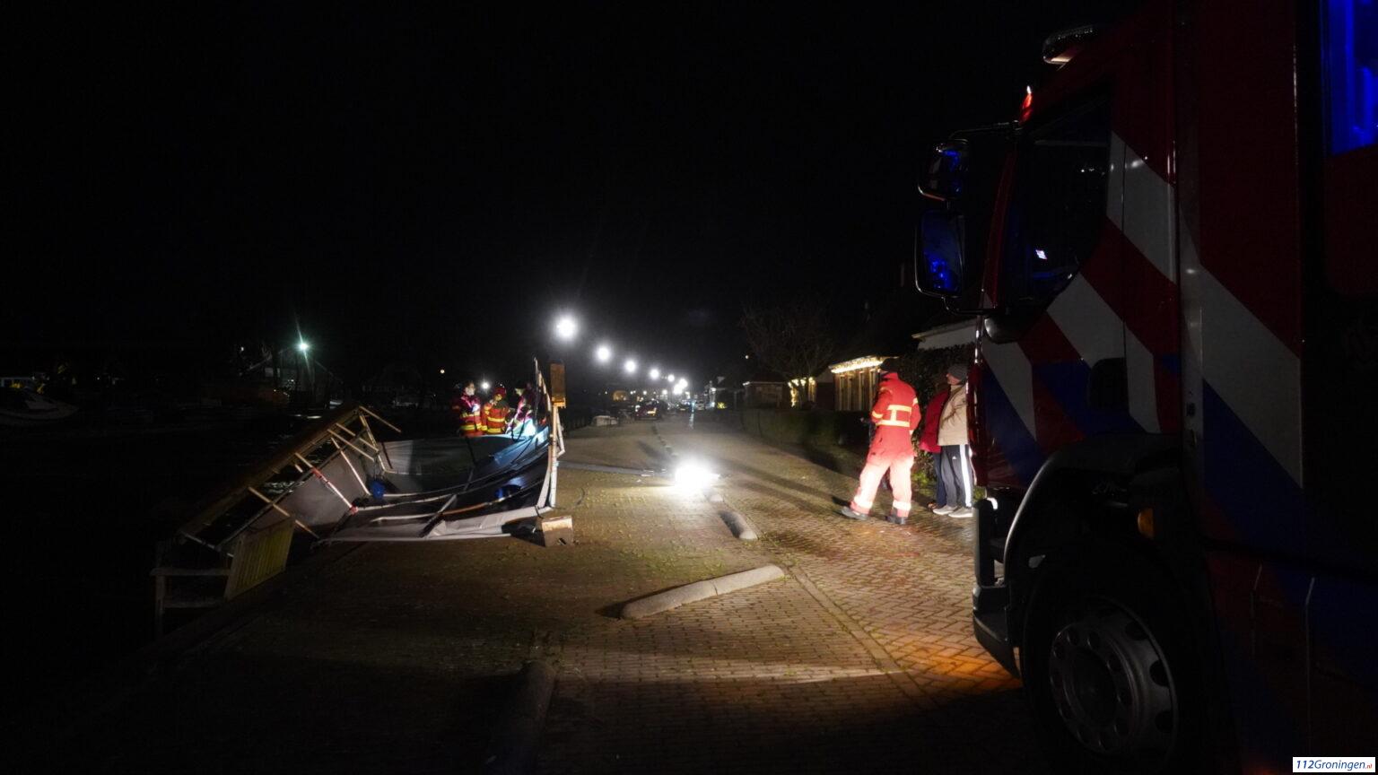 Onderdendam – Aan de Uiterdijk in Onderdendam is een drijvende boothuis omver gewaaid. Deze kwam op de kade terecht. De brandweer heeft het zeil losgehaald om erger te voorkomen.