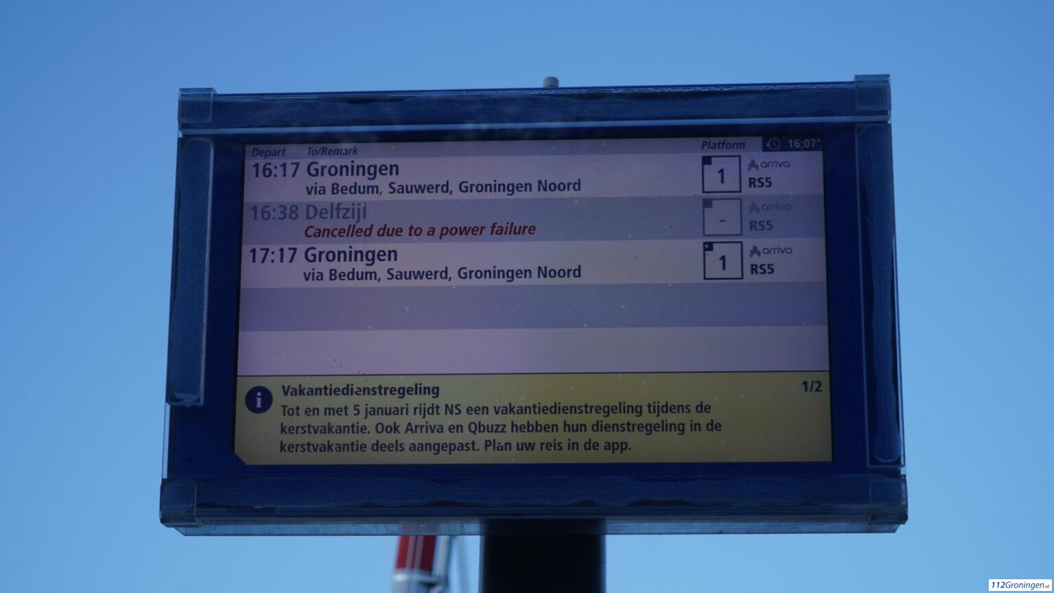 Stedum – Vanwege een forse stroomstoring Tweede Kerstdag rijden er tijdelijk geen Arriva treinen tussen Stedum en Delfzijl.