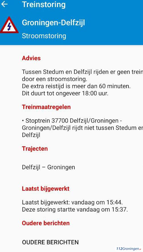 De storing is na verwachting rond 18:00 uur verholpen, dat roept men om bij het Station van Stedum. Zie ook