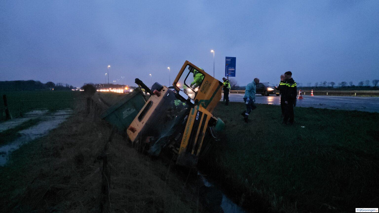 Noordwolde – Woensdag aan het einde van de middag is er een vrachtwagen in een sloot gekomen op de N46 Eemshavenweg nabij Noordwolde in de richting Eemshaven. Hoe dat precies kom gebeuren is nog niet bekend.