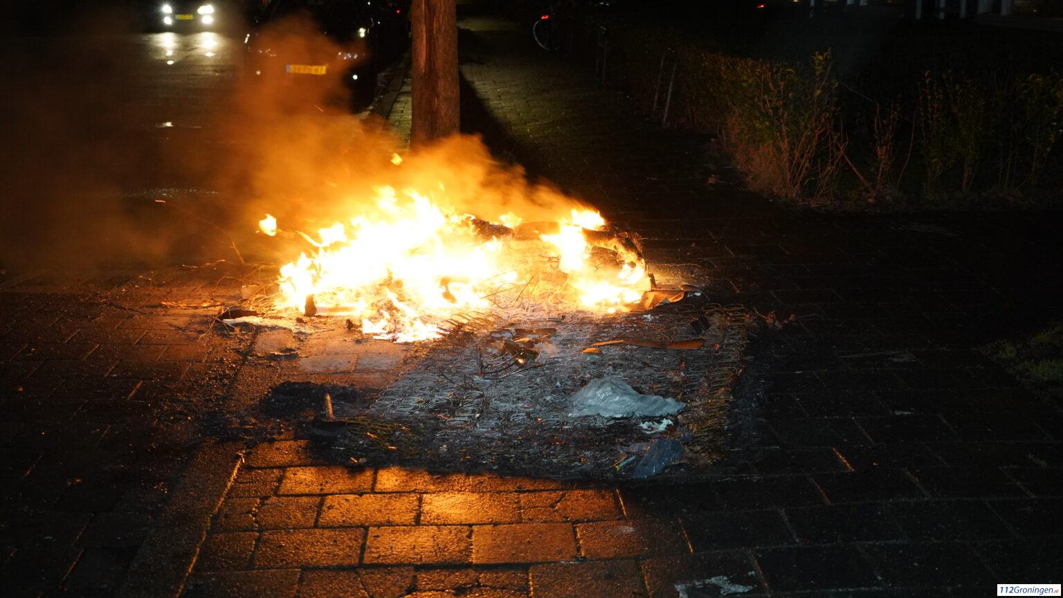 Groningen – Donderdagavond was er al een oudejaarsbrand aan de Voermanstraat in Paddepoel.