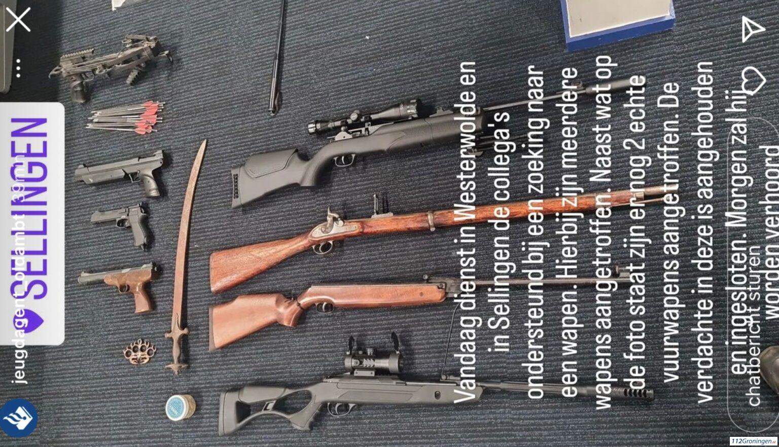 Sellingen – Woensdagmiddag zijn er allerlei wapens in beslag genomen bij een woning in Sellingen. De politie zocht naar een wapen bij een zoeking maar vonden toen diverse melden ze via Instagram.<