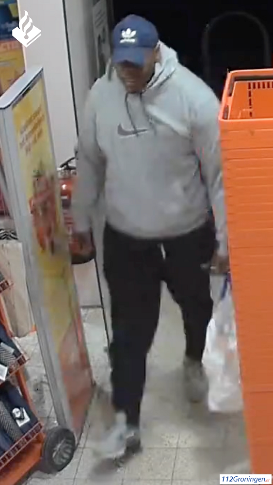 - Hij droeg een donker petje, een grijze hoodie met een logo en een donkere spijkerbroek. Ook droeg hij een ‘big shopper’ tas bij zich.