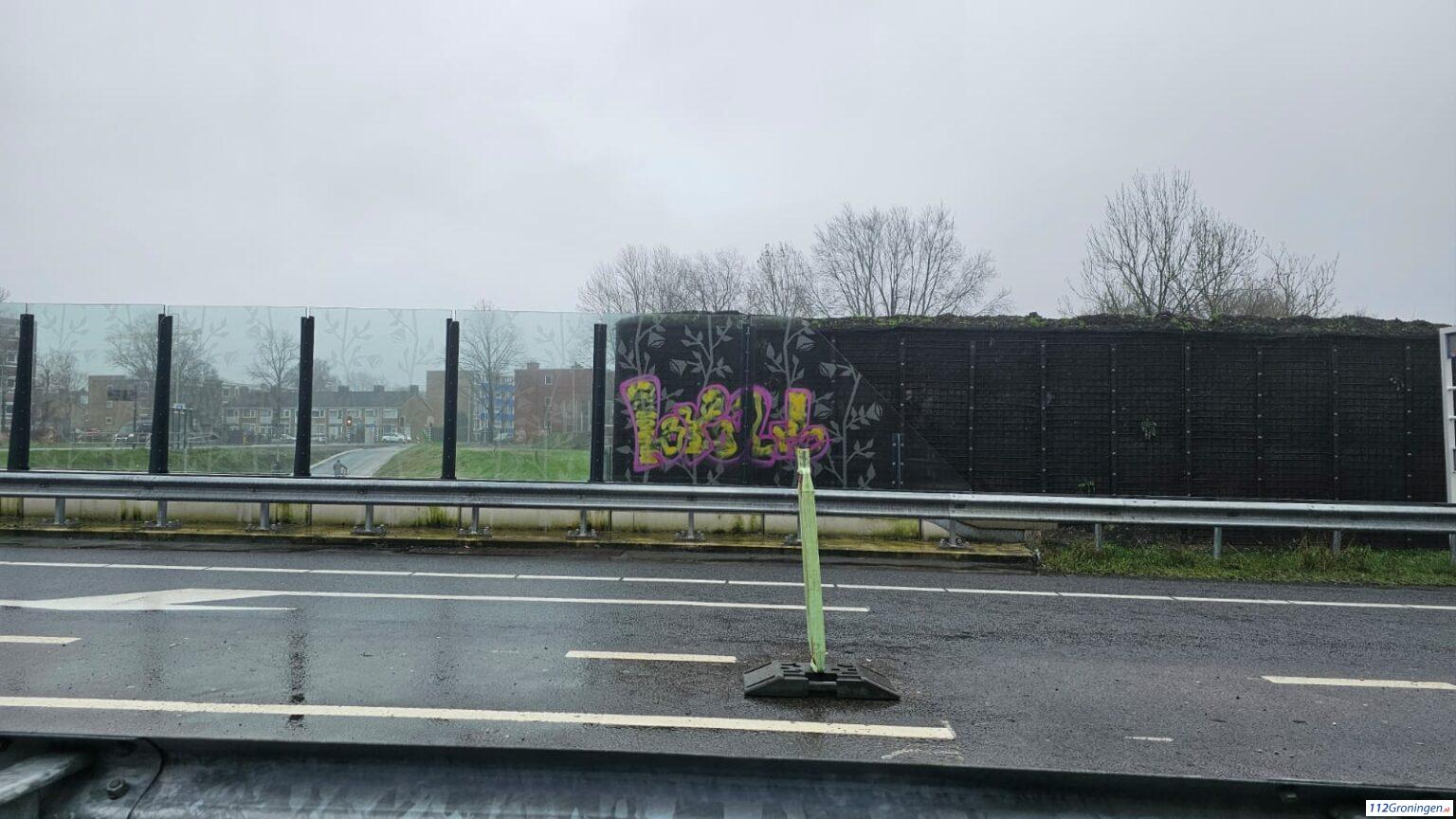 Nieuwsfotograaf Patrick Wind van 112groningen.nl vertelt dat de graffiti is aangebracht op een paneel bij de afrit A28 bij de Brailleweg. “Het gaat om een tag, die recent is aangebracht”, vertelt Wind. Het is niet voor het eerst dat Aanpak Ring Zuid te maken heeft met graffiti-vandalisme. Vorig jaar zomer werd het aangebracht op een aantal gloednieuwe panelen boven het A28-viaduct over de Van Iddekingeweg. Aanpak Ring Zuid liet toen weten van het vandalisme te balen: “Natuurlijk maken we het weer schoon. Maar het betekent extra werk en extra kosten.”
