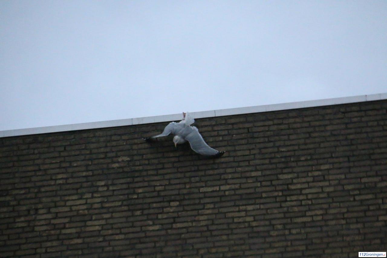 Groningen – Woensdagmiddag om 16:00 uur een melding van een meeuw vast aan een dakrand bij de Platinalaan. Deze is losgemaakt door de brandweer die met de hoogwerker ter plaatse kwam.