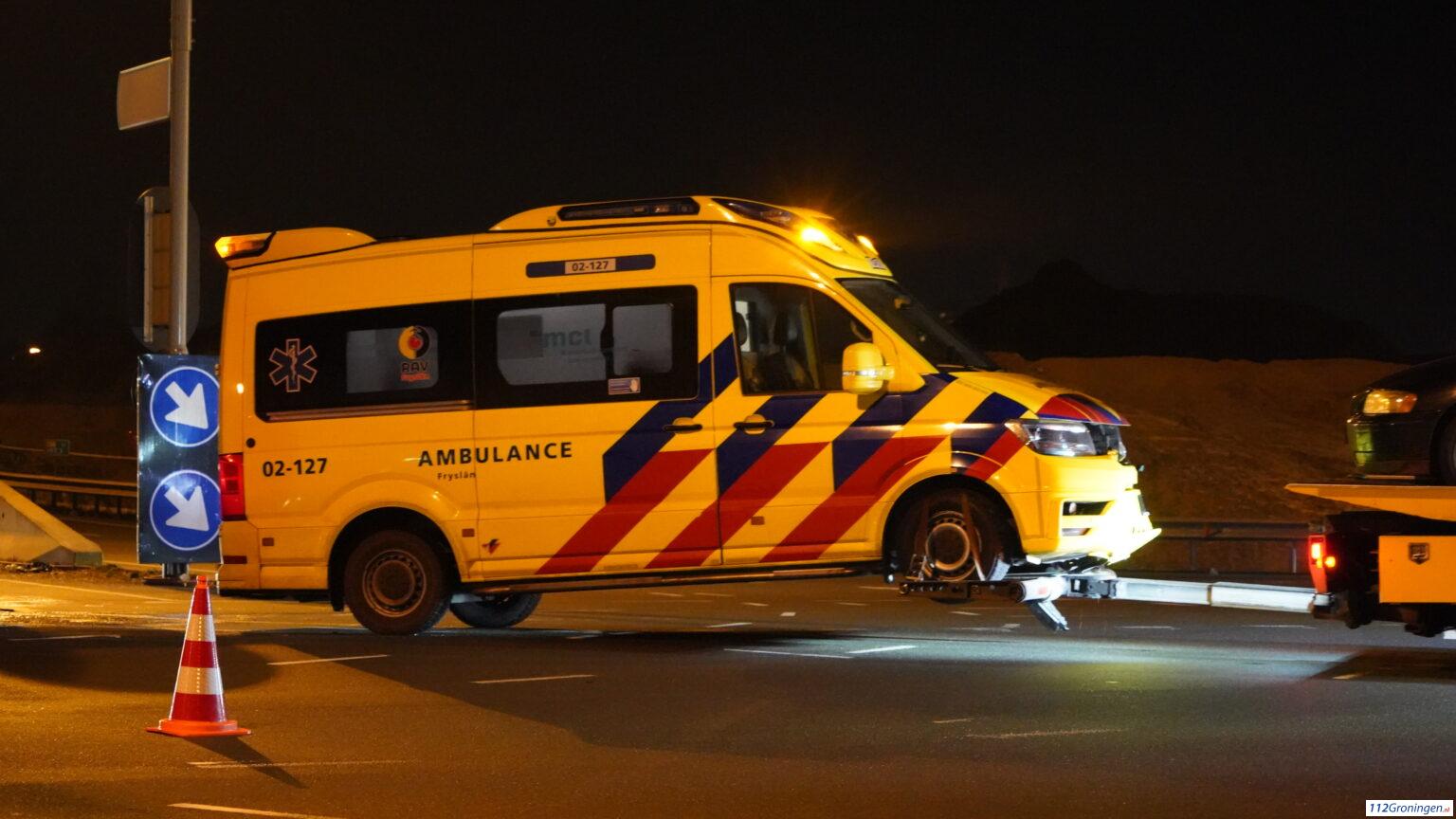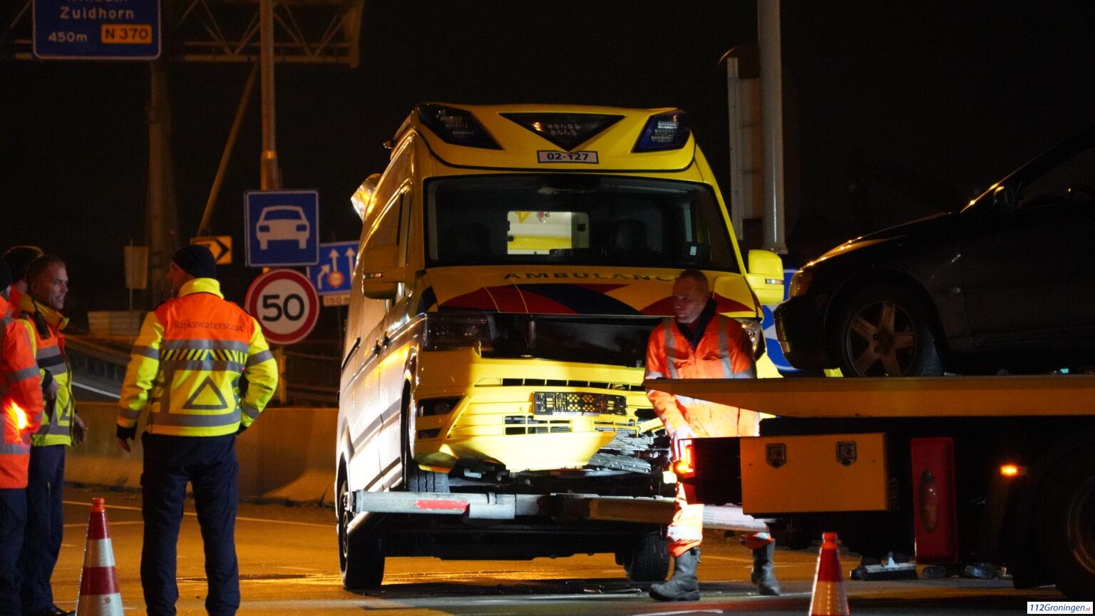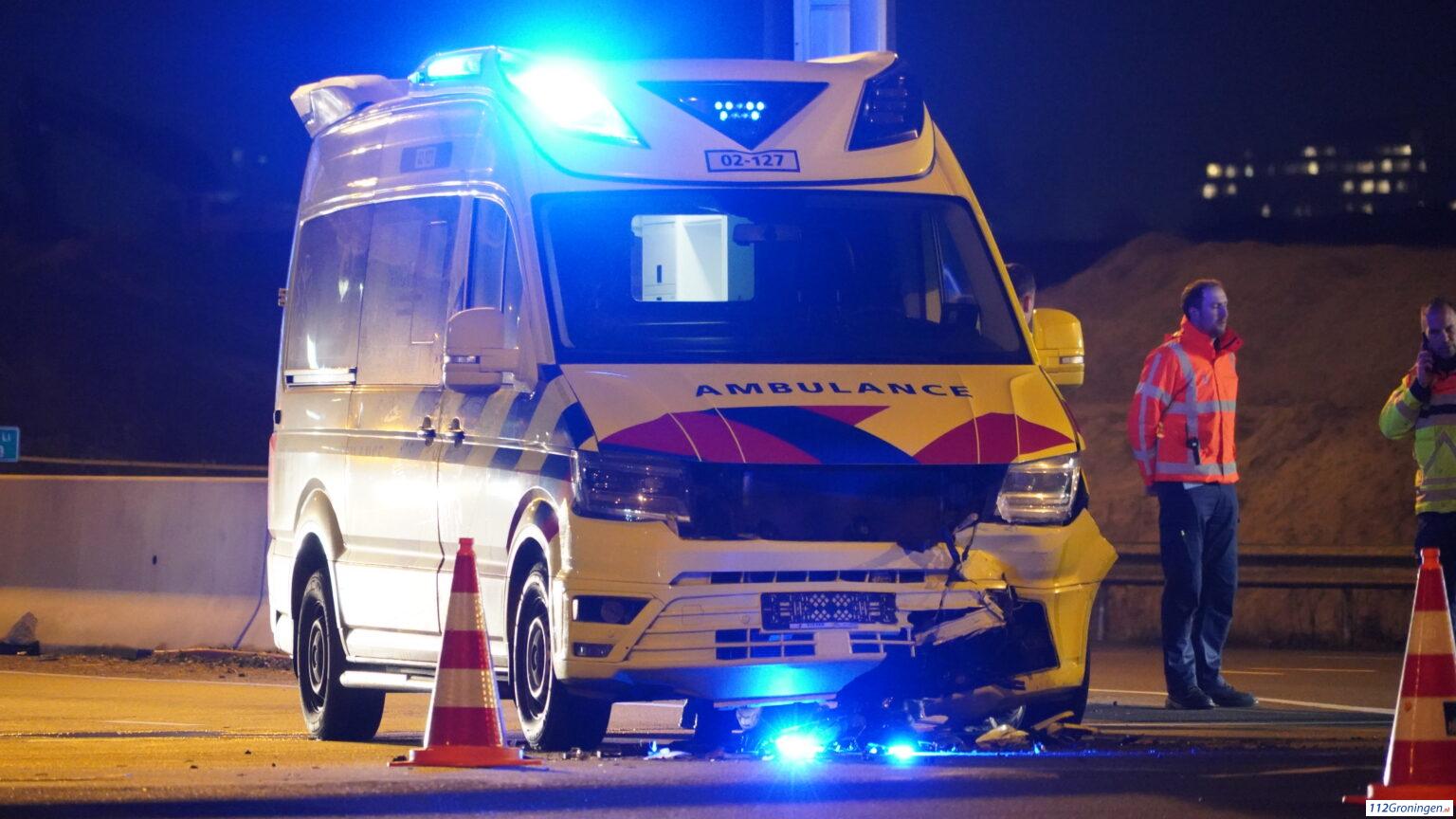 De politie doet onderzoek. De patiënt die aan boord was en met spoed onderweg was naar het UMCG is overgeplaatst naar een andere ambulance.