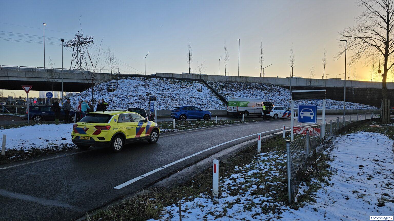 Groningen- Op de Bornholmstraat nabij de oprit naar de N7 heeft donderdagmiddag een aanrijding plaatsgevonden tussen een auto en een fietser. De fietser is hierbij lichtgewond geraakt.