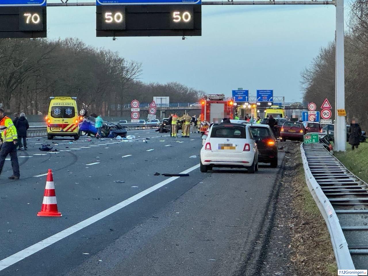 Bij het ongeluk zijn meerdere voertuigen betrokken, waarbij zeker één auto over de kop is geslagen. Hulpdiensten zijn massaal uitgerukt. “De snelweg is richting het Noorden volledig dicht”, laat Rijkswaterstaat weten. “Dit blijft de komende uren voorlopig ook nog zo, omdat de politie een onderzoek is gestart naar de toedracht.”
