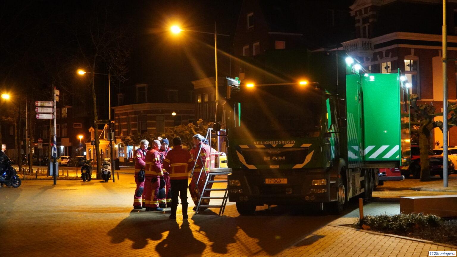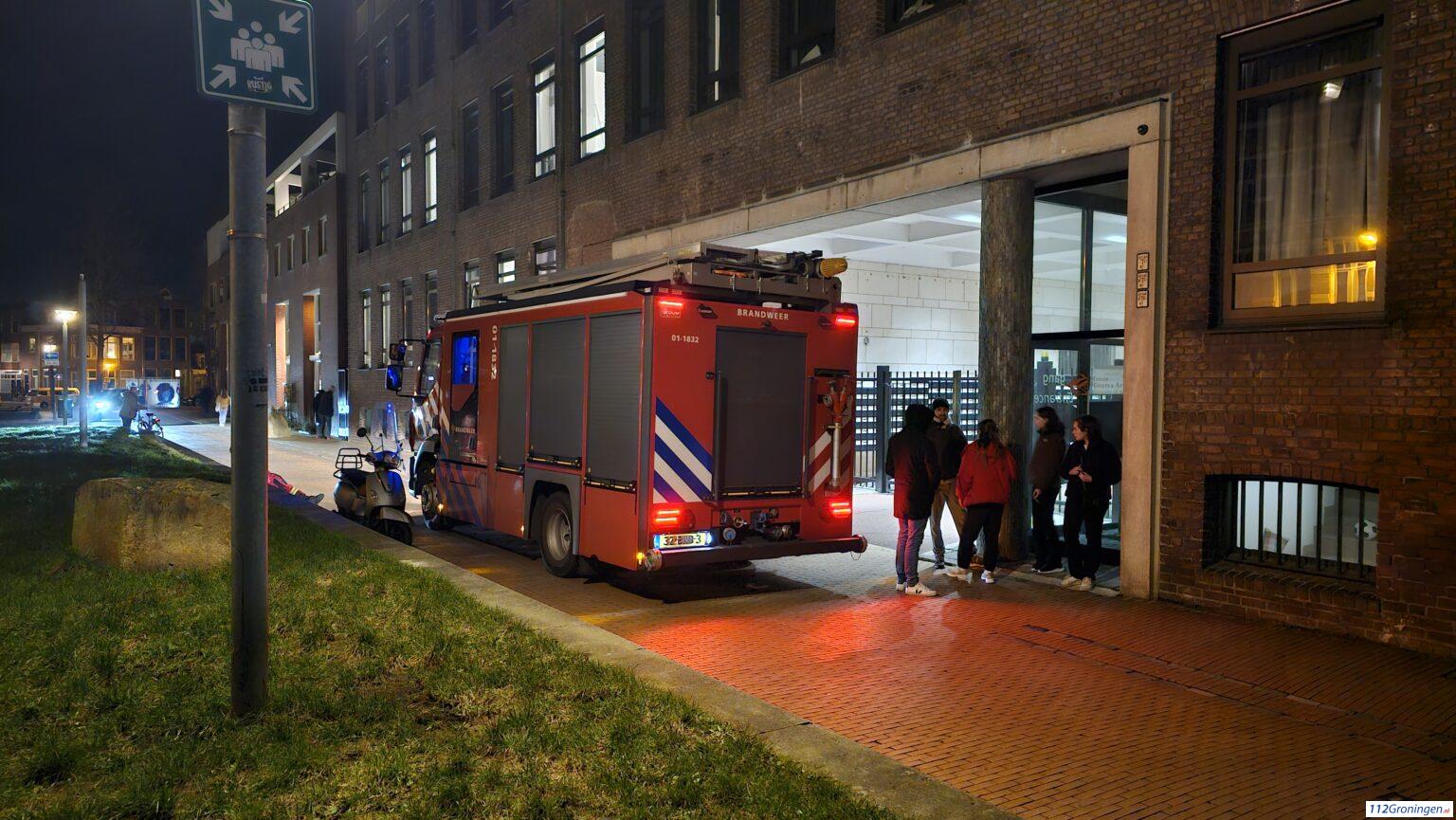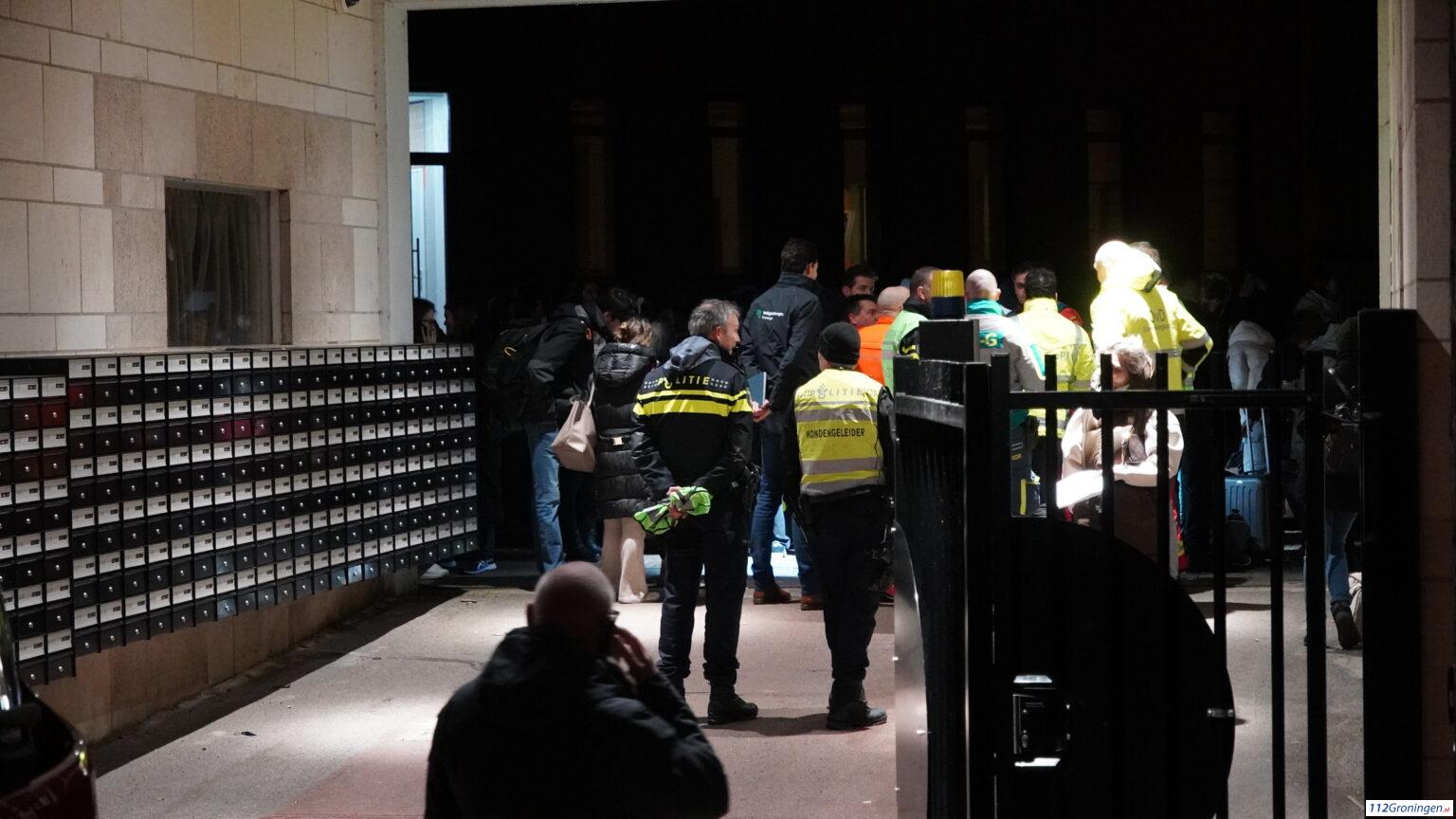 Rond 23.15 uur worden de bewoners van het pand opgevangen in de Oosterpoort in Groningen. Het is nog steeds niet bekend hoelang het gaat duren.