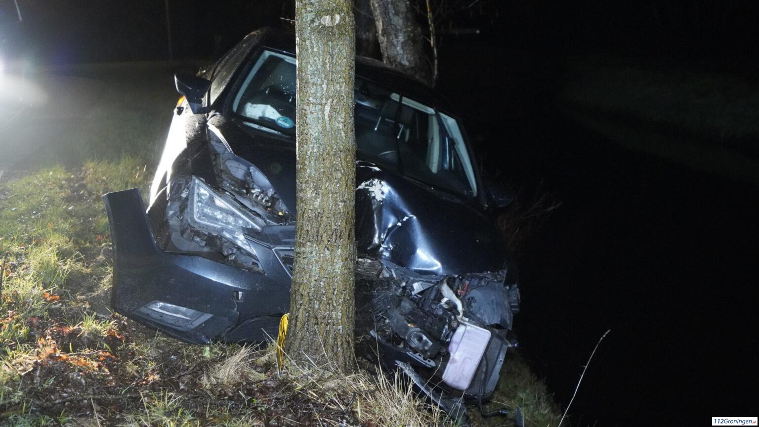 Zevenhuizen – Op de Gravelandsewijk Oudewijk is woensdagavond om 00:00 uur een auto via een sloot  tot stilstand gekomen tegen een boom. Niemand raakte wonderwel gewond.