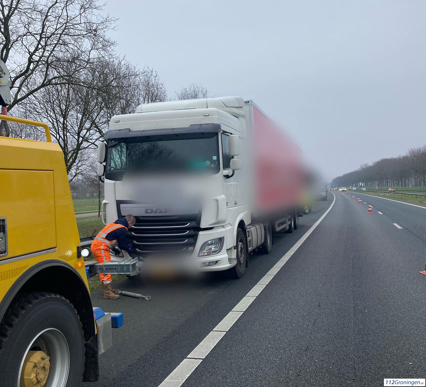 Hoogezand: Vrachtwagen met pech op de A7