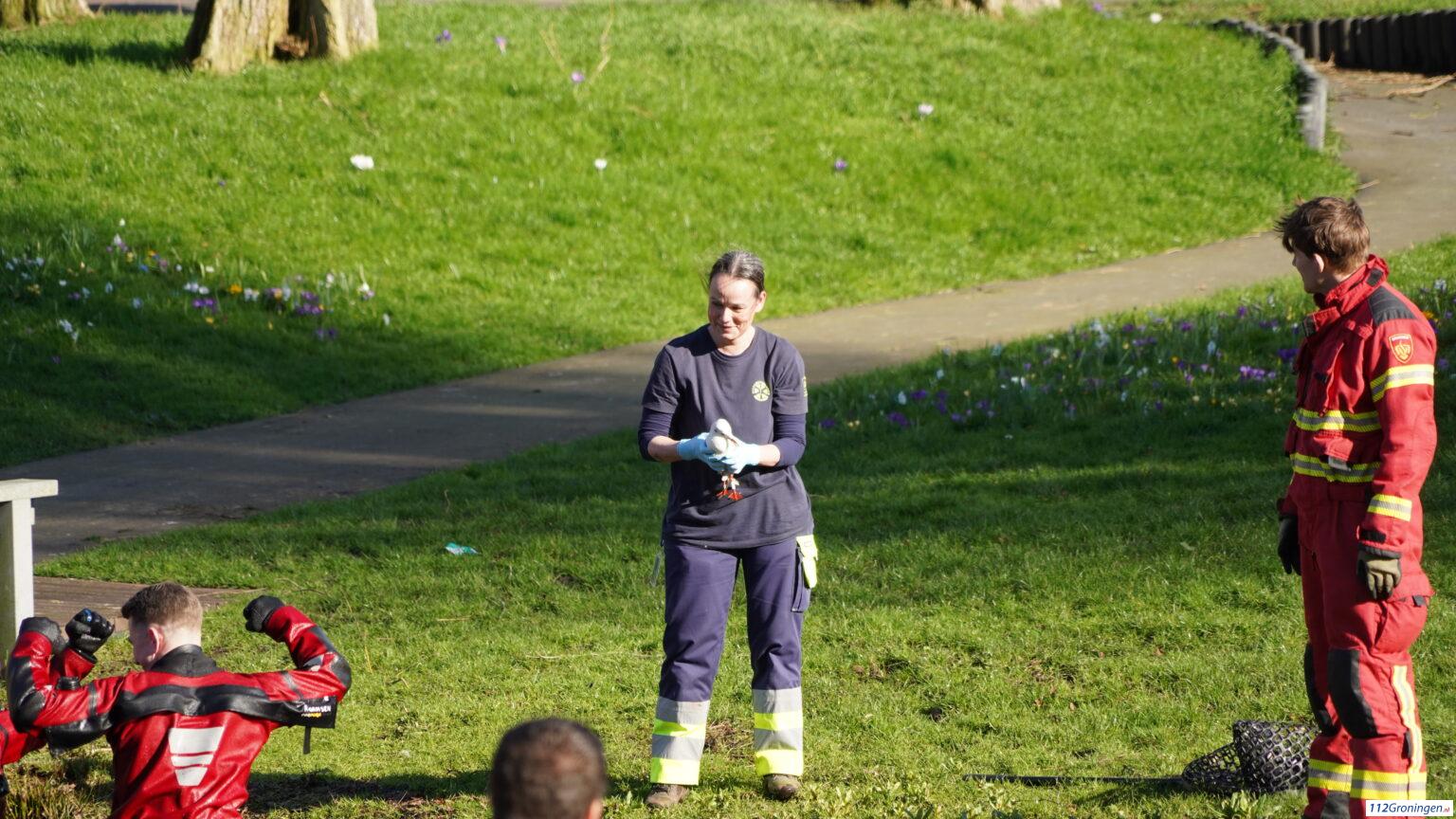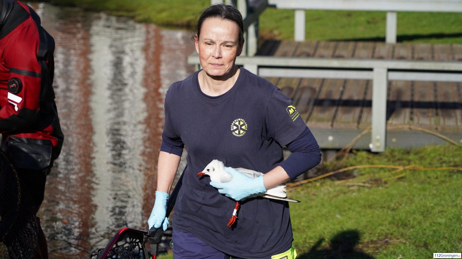 Groningen- De brandweer heeft vrijdagmiddag rond 14:35 uur de Dierenambulance Groningen geholpen met het vangen van een gewonde meeuw aan de Gorechtkade in de Oosterparkwijk.