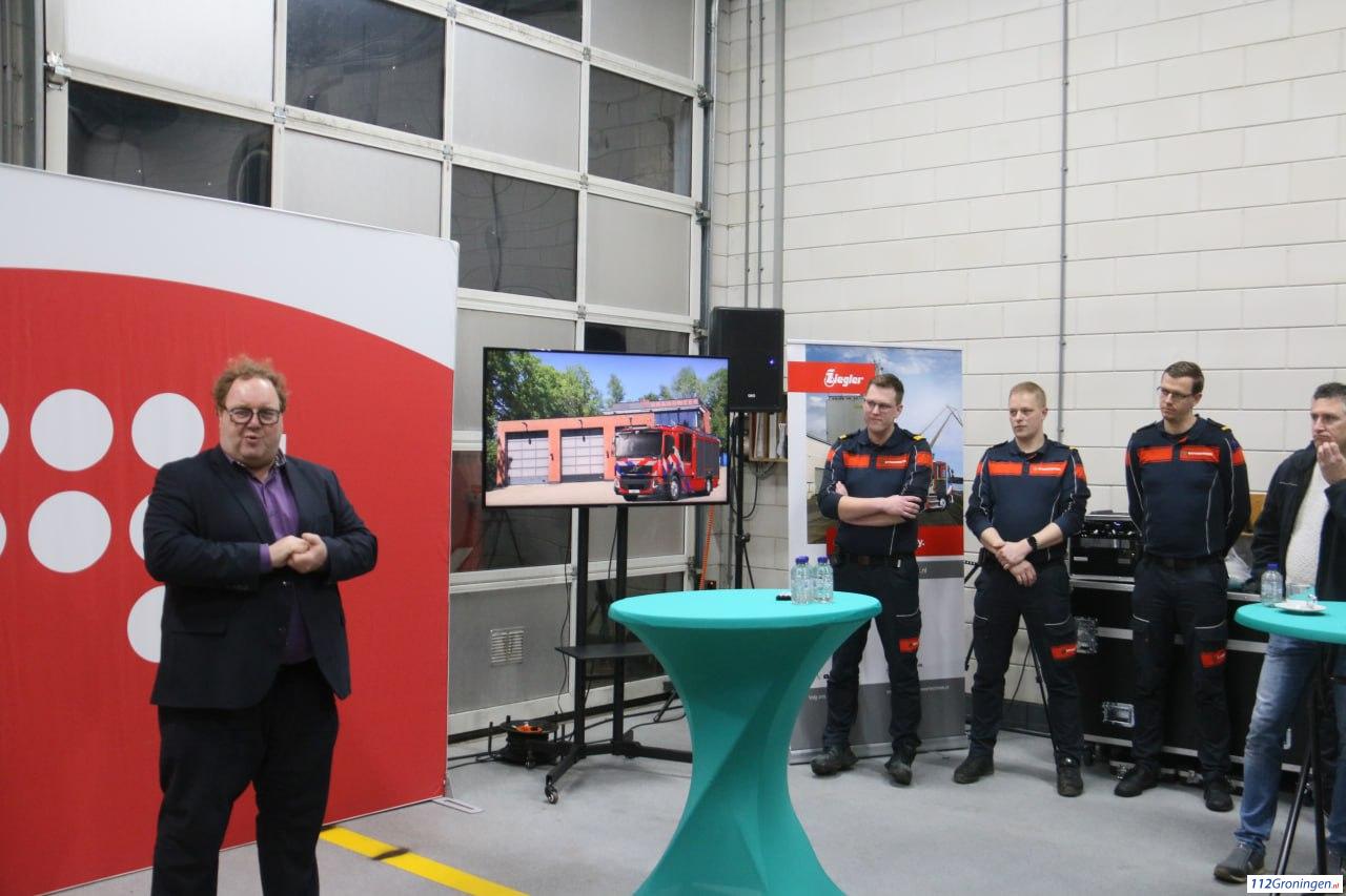 Ook Brandweer Commandant Roelf Knoop was aanwezig en sprak mooie woorden over het tot stand komen van dit project. Ook werd benoemd hoe mooi het is dat een mooi product als dit in de regio wordt geproduceerd.