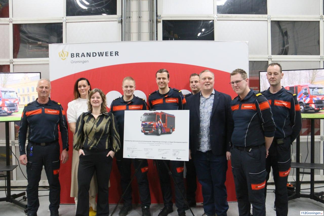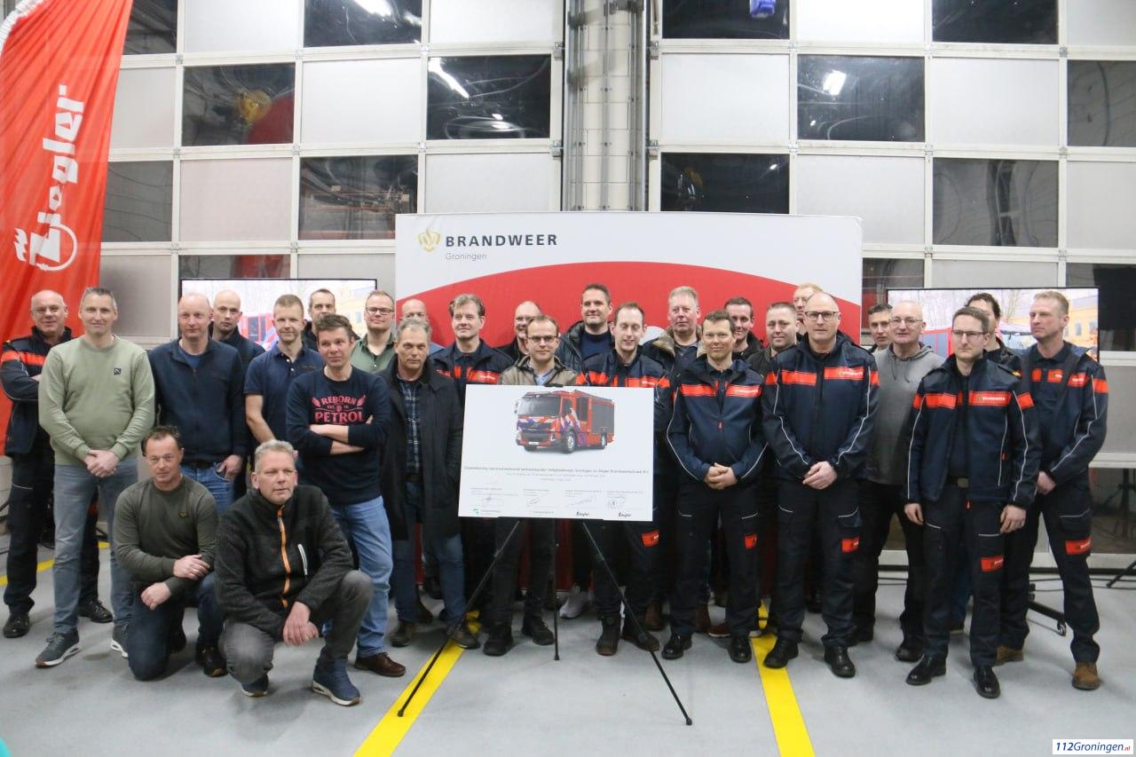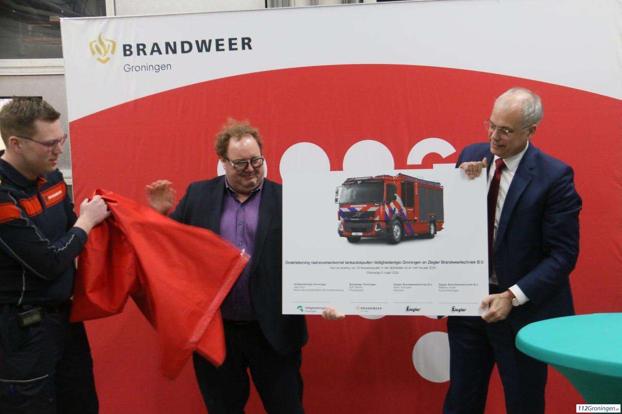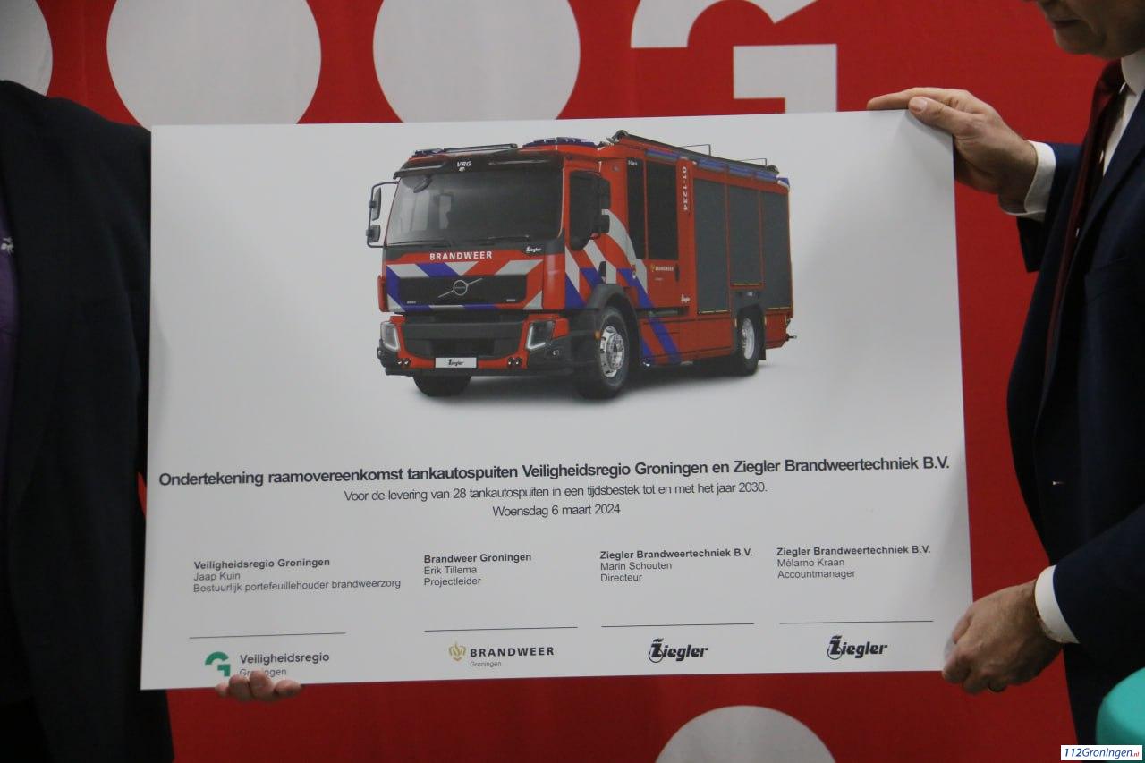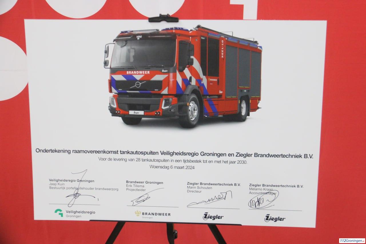 Dit gebeurde in de kazerne van Oude Pekela. In totaal worden er 28 tankautospuiten vervangen, deze voertuigen op een Volvo FE chassis worden gebouwd door Ziegler Brandweertechniek B.V. uit Winschoten. De voertuigen zullen in de periode 2026-2030 binnenstromen bij de diverse posten.