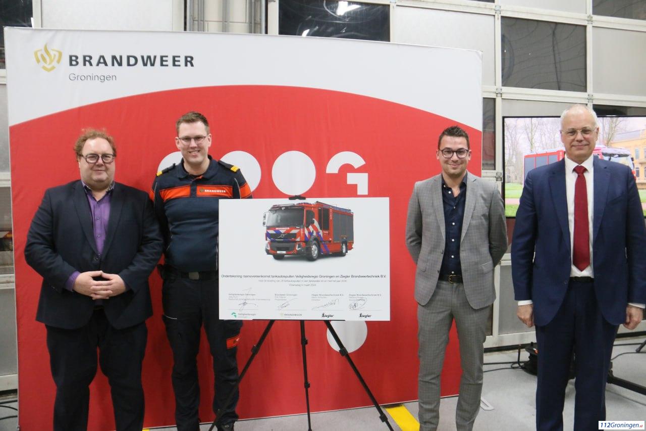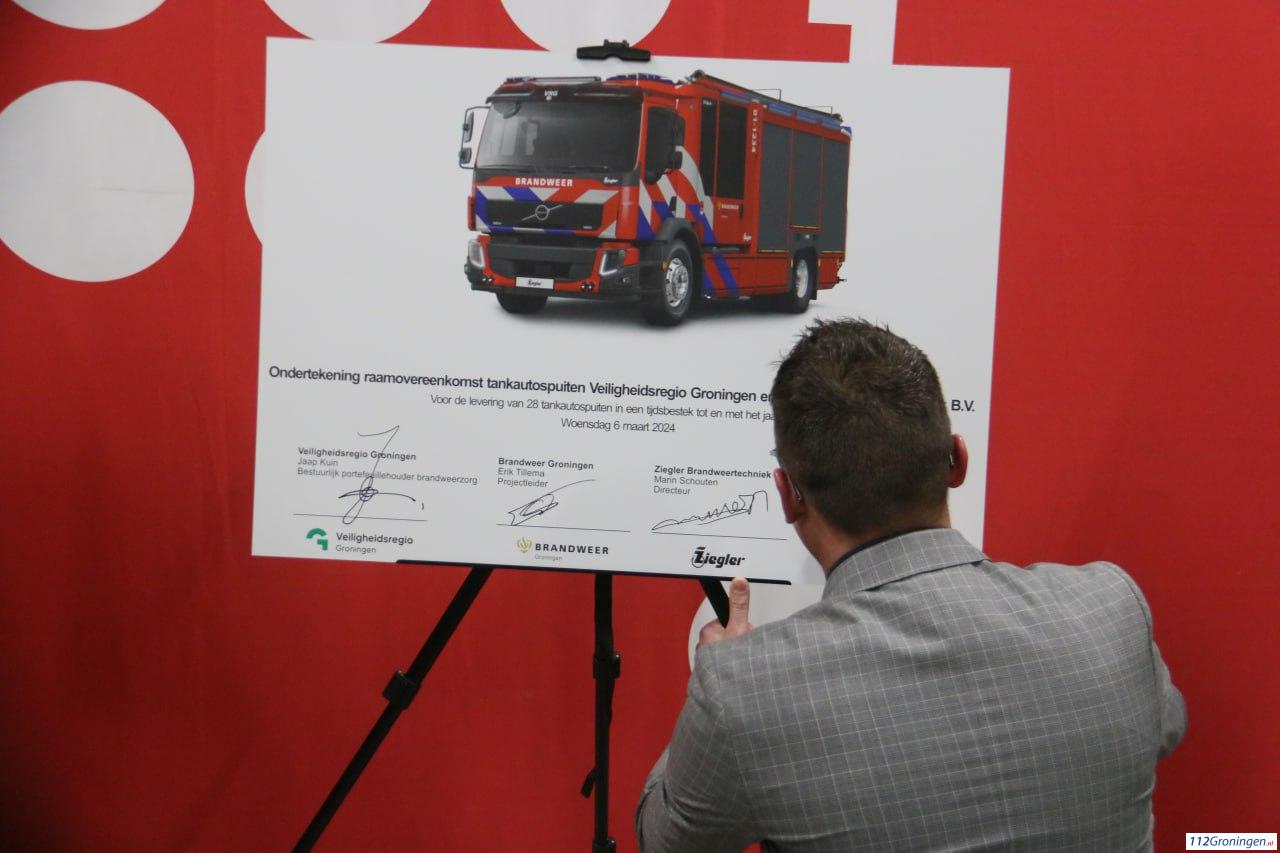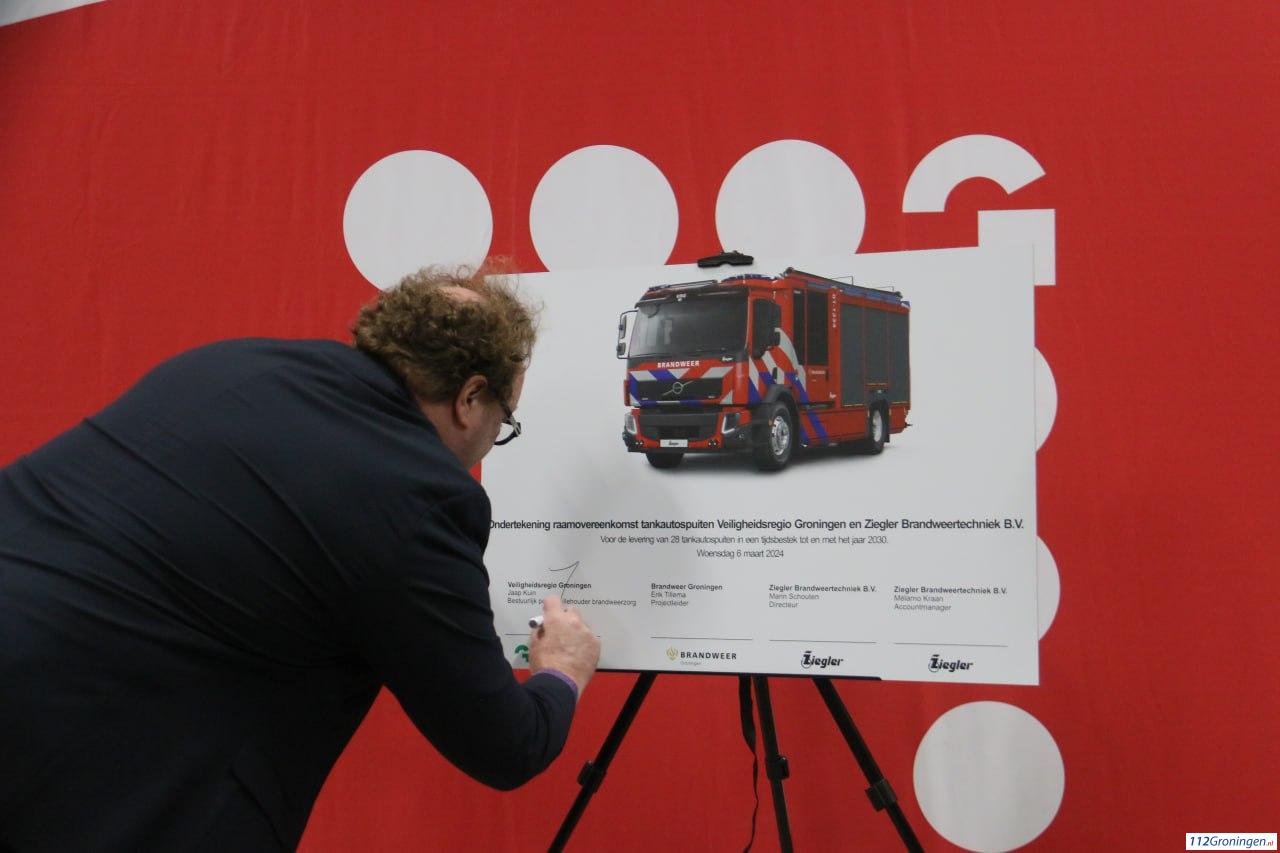 Bij het officiële tekenmoment hebben Burgemeester Jaap Kuin als bestuurlijk portefeuillehouder brandweerzorg van Veiligheidsregio Groningen, Erik Tillema projectleider brandweer Groningen, Directeur Marin Schouten van Ziegler en Accountmanager Mélarno Kraan eveneens van Ziegler hun handtekening gezet. Dit onder toezicht van het projectteam, de ambassadeurs van de posten die een nieuwe tankautospuit ontvangen en genodigden.