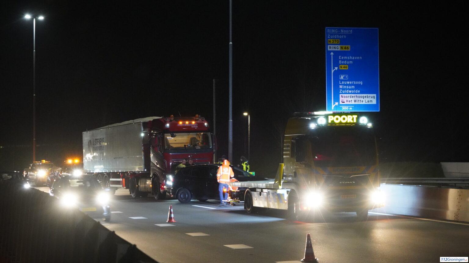 Groningen – Op de N46 te hoogte van afslag Beijum Noord heeft donderdagavond rond 19:30 uur een ongeval plaatsgevonden tussen een vrachtwagen en een personenauto.