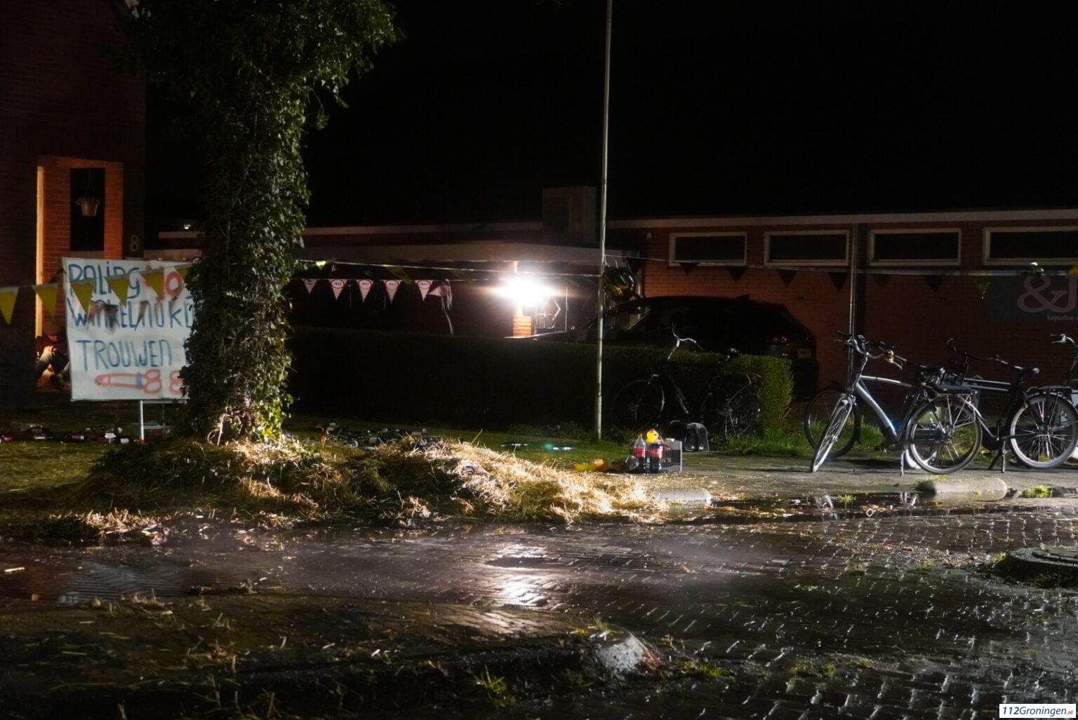 Eenmaal ter plaatse bleek er gelukkig geen sprake te zijn van een brandend voertuig, maar stond er wat stro in de brand. Dit had vlam gevat nadat er vuurwerk werd afgestoken ter gelegenheid van een verjaardag van een bewoner (40) van een naastgelegen huis.