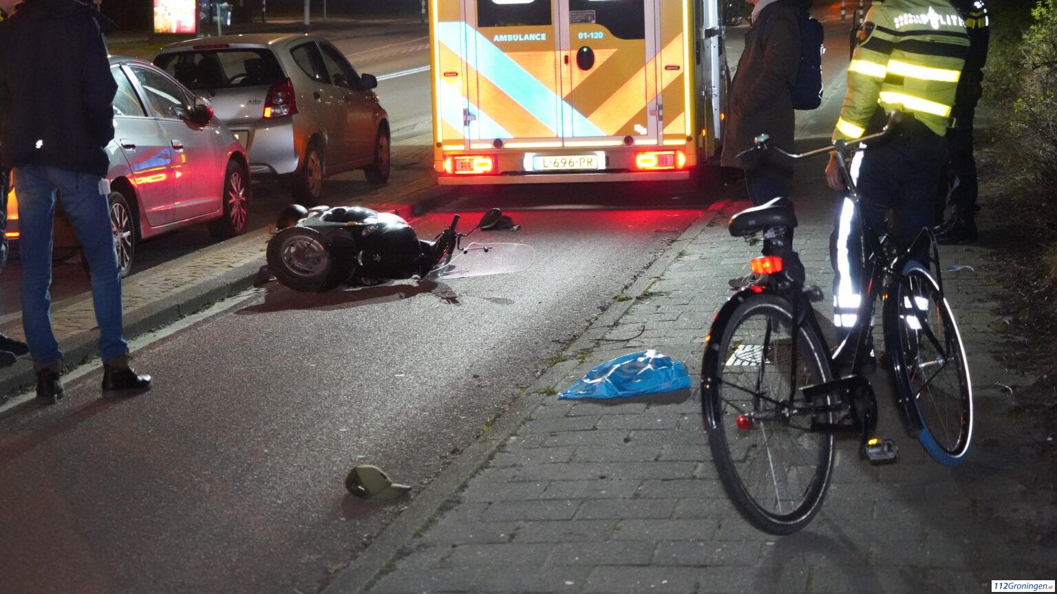 Groningen- Op het fietspad aan de Van Ketwich Verschuurlaan heeft donderdagavond om 21:30 uur een forse aanrijding plaatsgevonden waarbij een scooterrijder en voetganger waren betrokken.