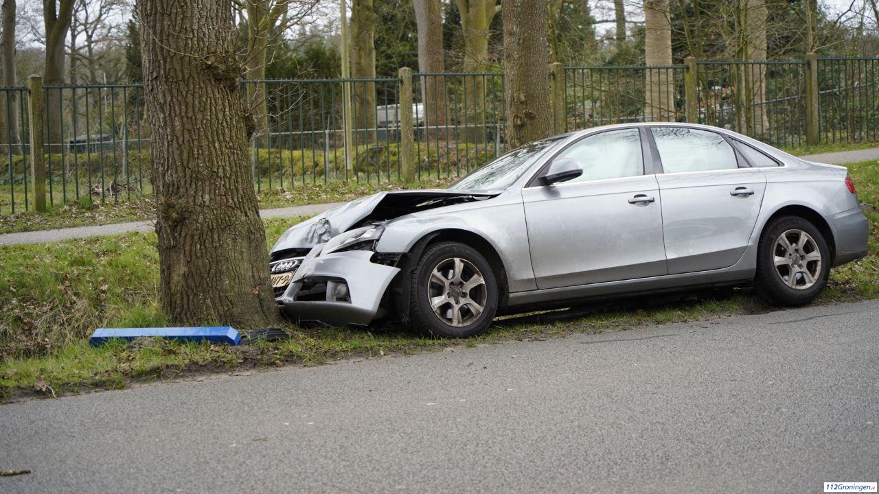 Roden – Woensdagmiddag is op de Norgerweg bij Roden een autob tegen een boom gebotst, alvorens een lantaarnpaal en 30km bord plat gereden. De toedracht is niet bekend.
