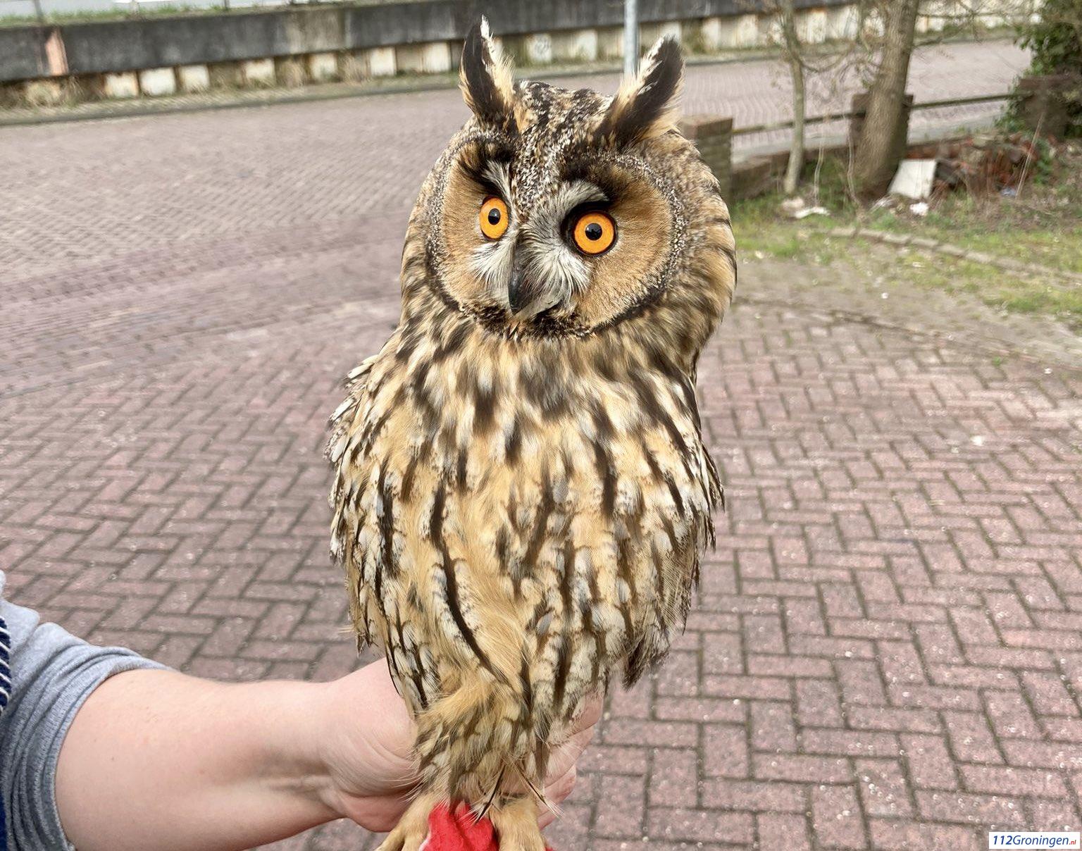 Ook deze uil is overgebracht naar de dierenambulance, hij was tijdens de rit er diep van onder de indruk! Hij zal herstellen en dan weer worden vrijgelaten.