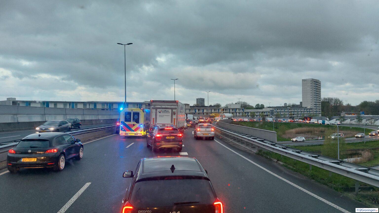 Groningen – Door een ongeval op de noordelijke ringweg op de N370 ontstond er een lange file rond der stad. Bij het ongeval ter hoogte van Selwerd botsten twee auto’s tegen elkaar.