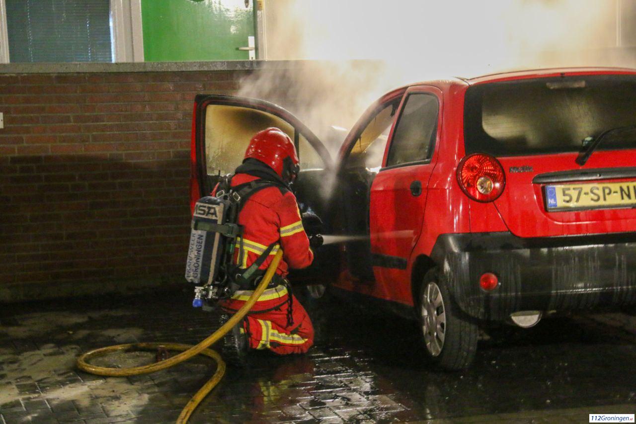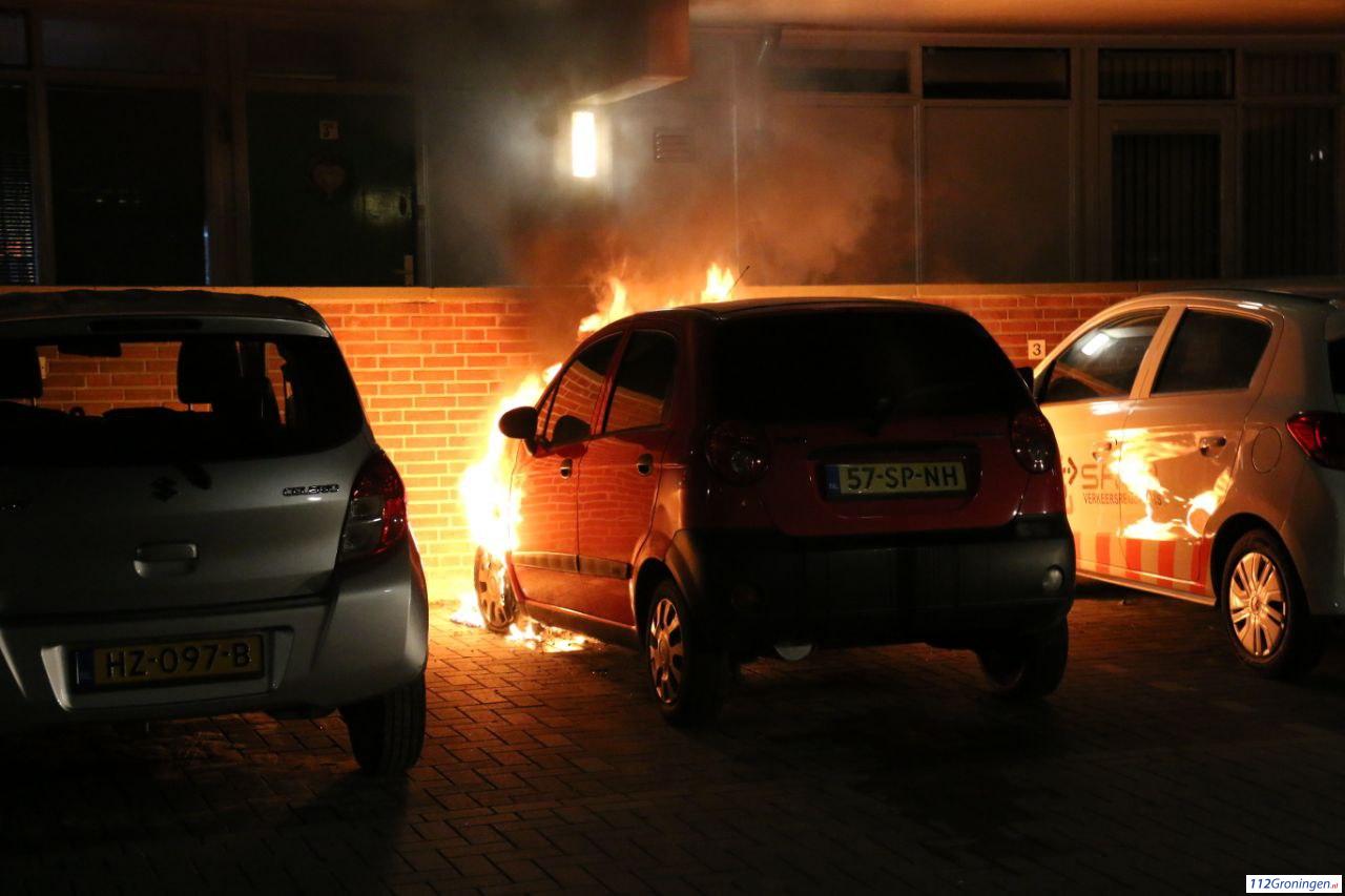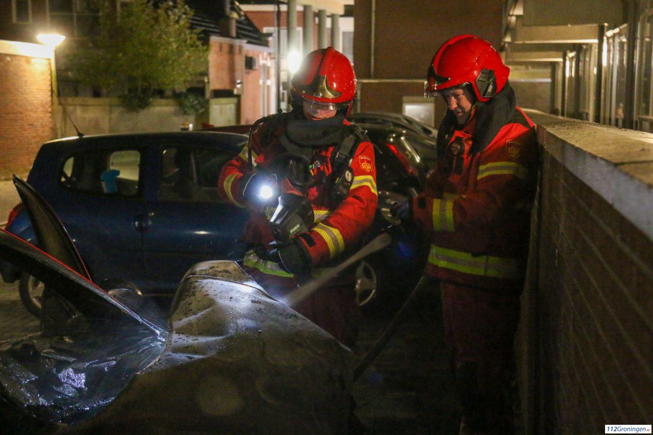 De auto is volledig uitgebrand. Twee andere voertuigen liepen ook schade op. Politie komt nog ter plaatse omdat er vermoedens zijn van brandstichting. Mensen werden op de balkons weggestuurd vanwege de rook en ze moesten ramen sluiten.