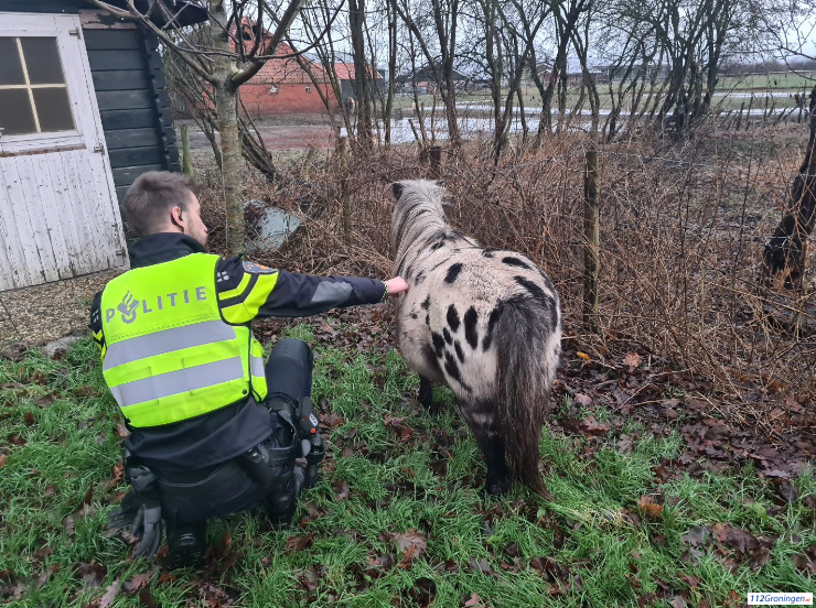 Stadskanaal – Vaak krijgen agenten de vraag: ‘Wat doen jullie op een werkdag?’. Deze keer kreeg de politie een melding van een los lopende pony op de openbare weg. Dit levert uiteraard gevaarlijke situaties op. Naar geruime tijd gaf te pony het ‘leuke’ spelletje toch maar op en konden de agenten haar even aaien. Vervolgens konden de pony terug begeleiden naar haar vriendjes in het weiland.
