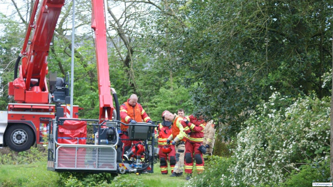 Zuidbroek – Zondagavond kreeg de brandweer een melding van een kat in de boom aan Stationsstraat in Zuidbroek, de brandweer kwam ter plaatse en probeerde door middel van een ladder de kat uit de boom te halen. De kat zat te hoog waardoor er een hoogwerker werd opgeroepen.