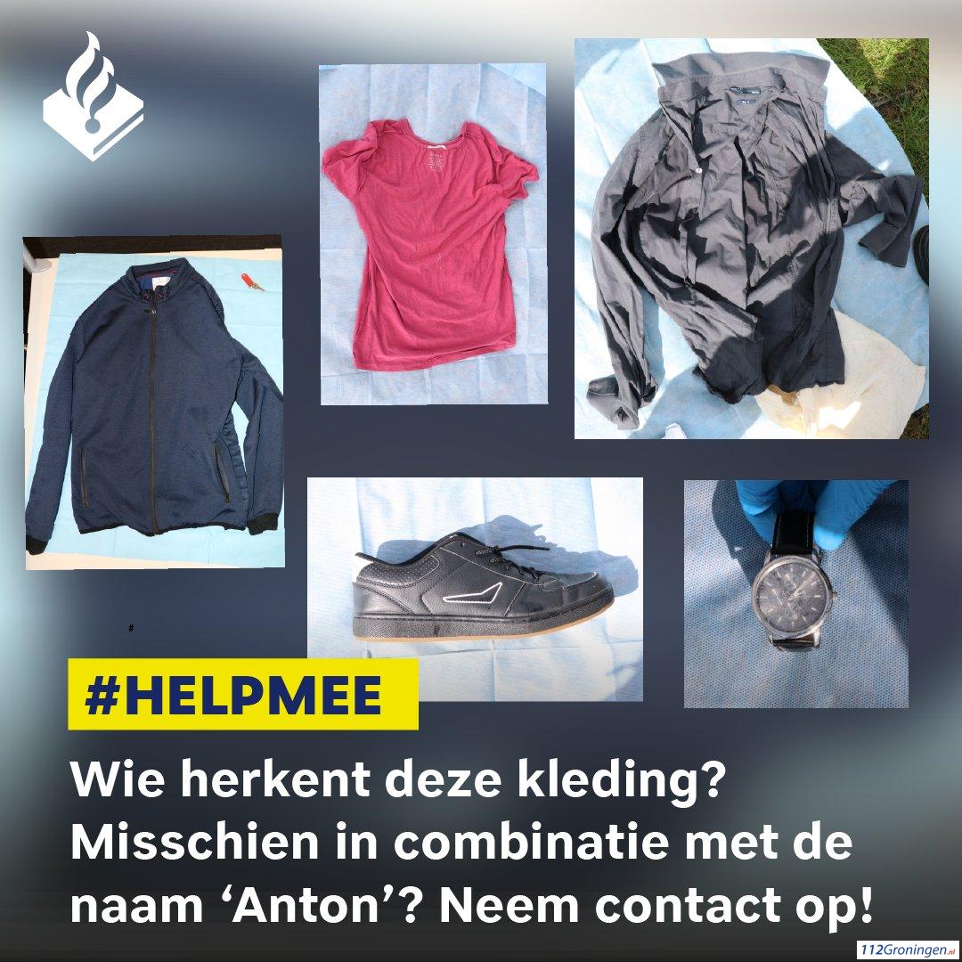 Foto’s van de aangetroffen kleding zijn de afgelopen dagen verspreid door de politie. Het gaat om een roodkleurig T-shirt, zwarte schoenen met een wit logo, een donkere blouse, een donker vest en een horloge. Opvallend detail is dat in één van de labels van de kledingstukken de naam ‘Anton’ staat geschreven. Mensen die de kleding herkennen, of meer informatie hebben over de zaak, kunnen zich melden bij de politie op telefoonnummer 0900 88 44.