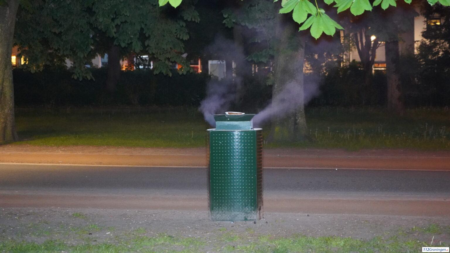 Ook twee andere prullenbakken heeft de brandweer uit voorzorg gevuld met water. De melder heeft aangegeven dat een paar internationale studenten aan het barbecueën waren waarna ze de hete kolen in de prullenbak hadden gedeponeerd.