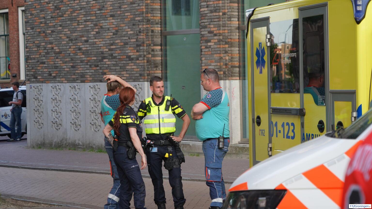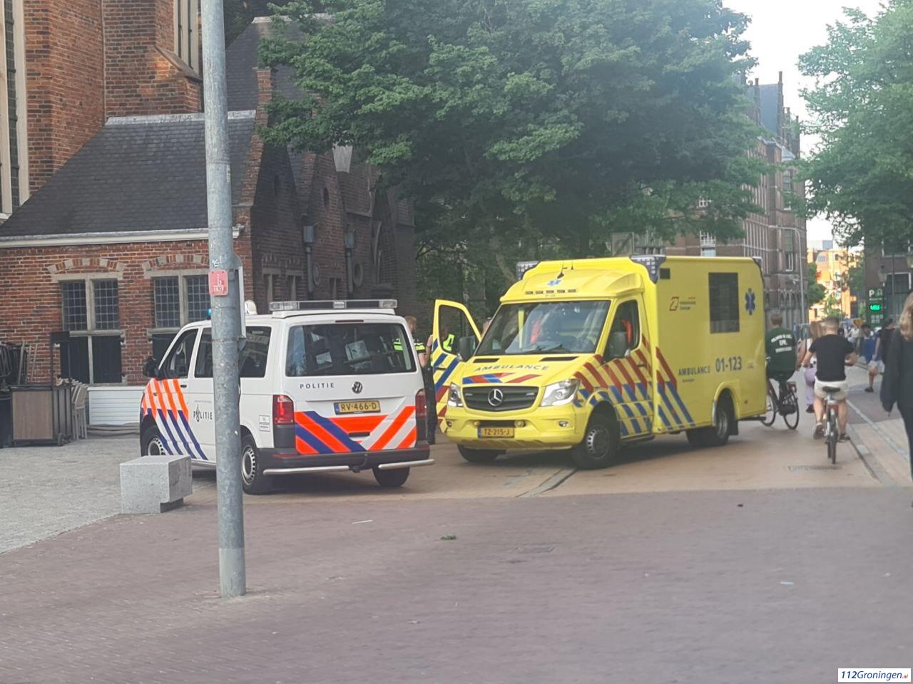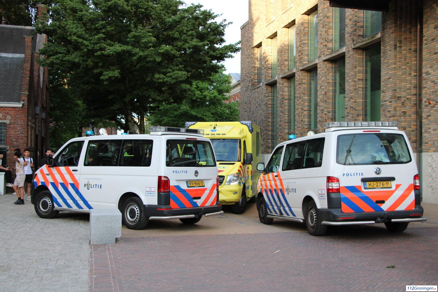 Meerdere politie-eenheden en een ambulance kwamen op de melding af. Twee personen werden kort nagekeken door ambulancepersoneel op het Martinikerkhof, Het lijkt erop dat niemand ernstig letsel op heeft gelopen.