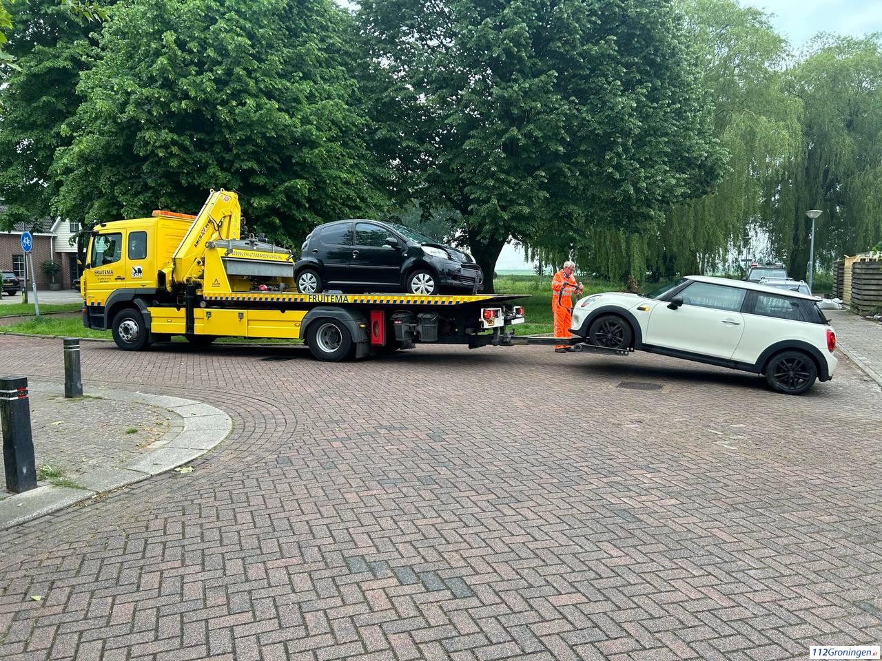 Winschoten – Tweede Pinskterdag om 06:00 uur is de zwarte auto vanaf de C. Huygenslaan in Winschoten recht op een auto, een geparkeerde Mini, ingereden op de Multatulistraat, welke daar stond.
