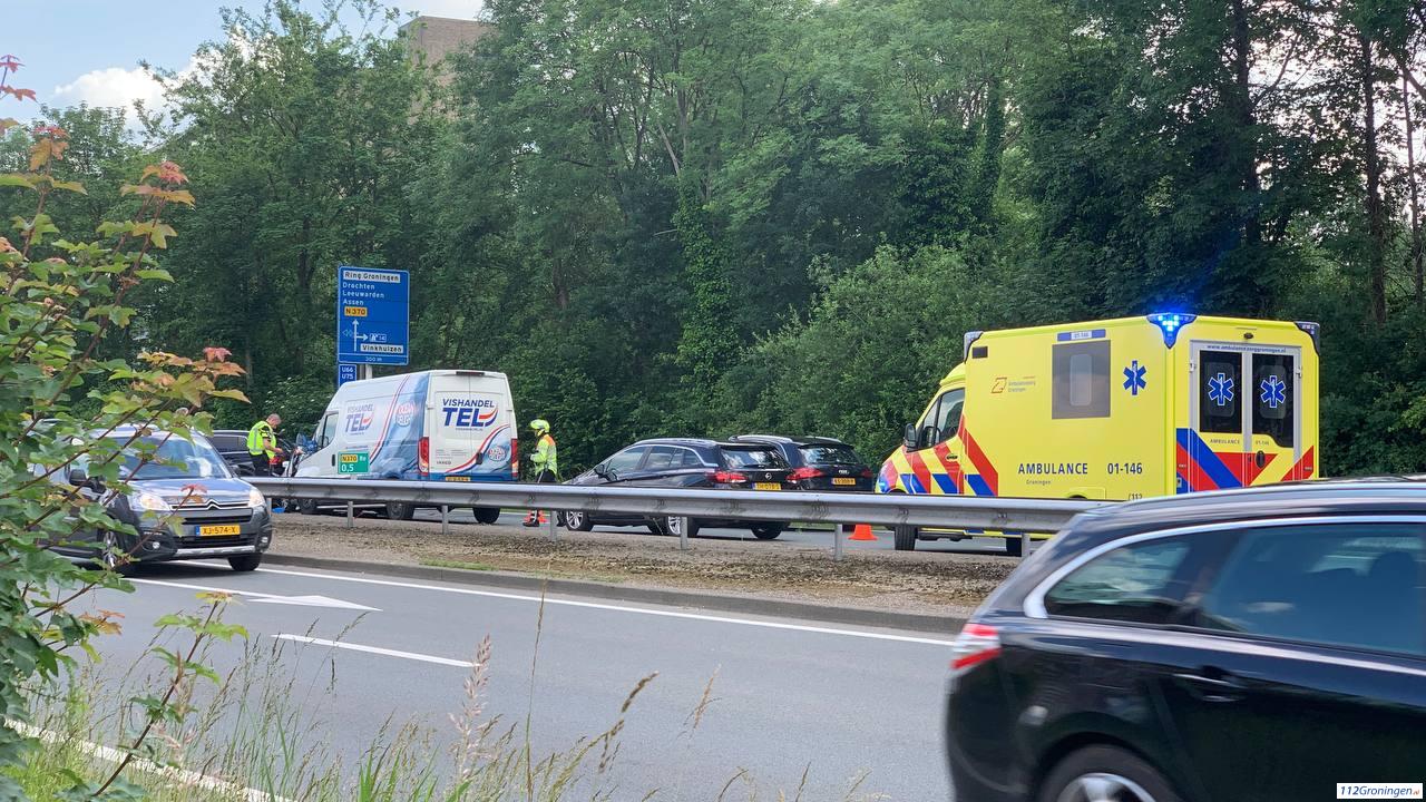 Groningen – Op de N370/ Friesetraatweg t.h.v. de Edelsteenlaan bij Vinkhuizen is een aanrijding ontstaan tussen vijf voertuigen. 1 persoon raakte gewond.