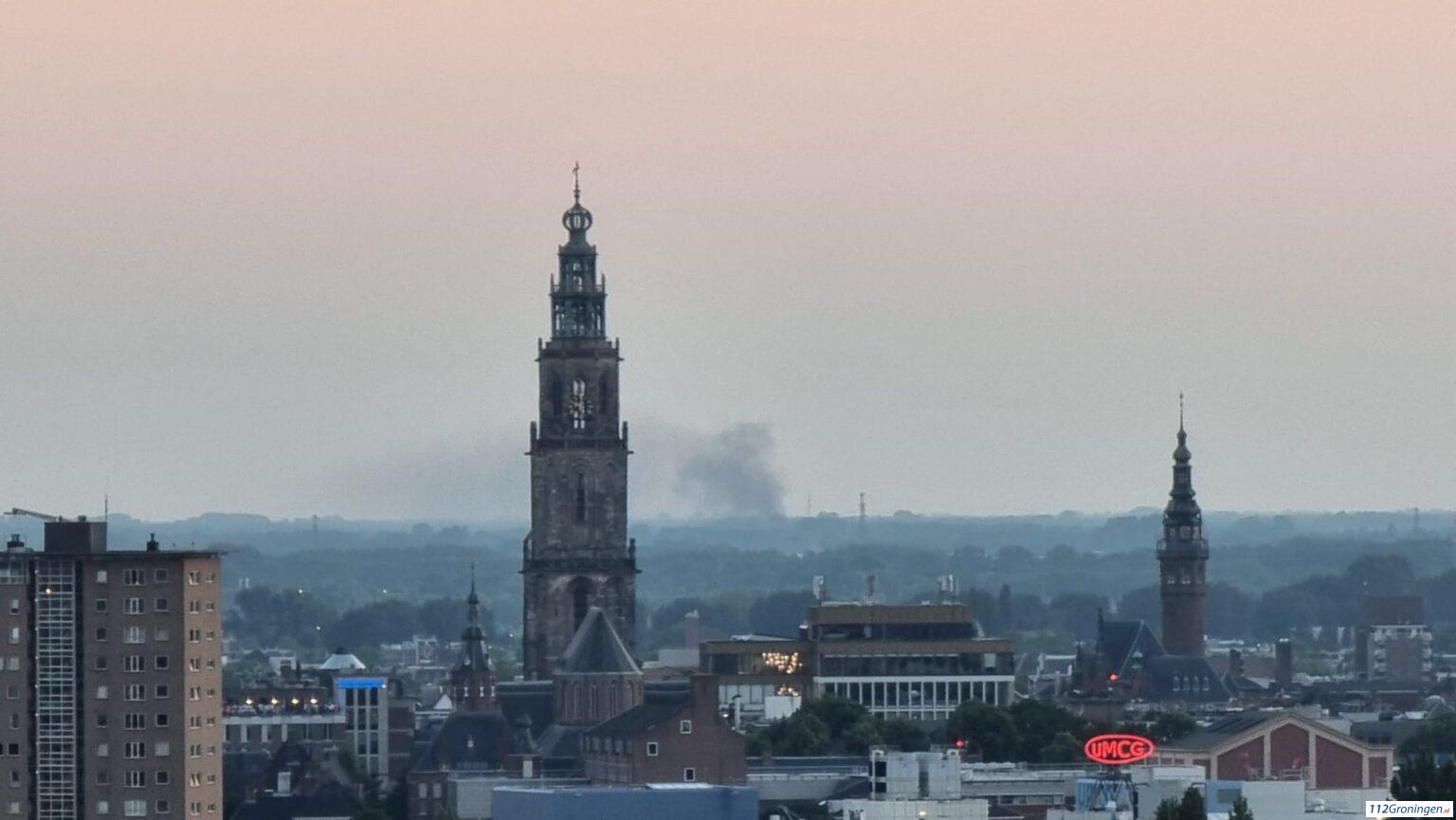 Vanuit de stad(Tasmantoren) was de rookpluim goed te zien. Het betrof een hooibalenpers.
